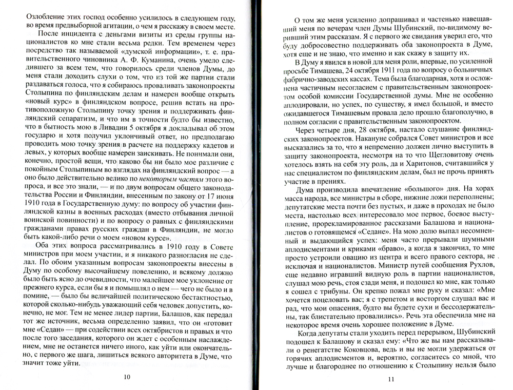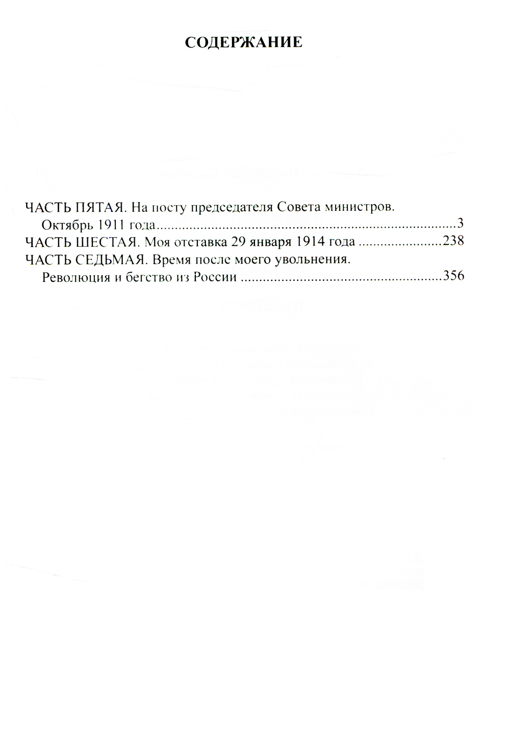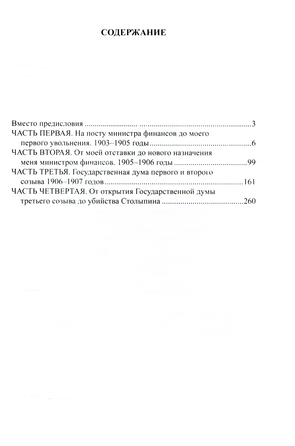 Первый том воспоминаний освещает деятельность В. Н. Коковцова на посту министра финансов в 1903-1906 годах и рассказывает о работе Государственной думы I и III созывов, вплоть до убийства Столыпина.