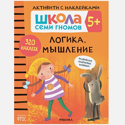 Логика, мышление 5+ (Серия «Школа Семи Гномов. Активити с наклейками»), книжка с наклейкамиКнига «Логика, мышление 5+» из серии «Школа Семи Гномов. Активити с наклейками» предназначена для развития и тренировки логического мышления детей от 5 до 6 лет.
