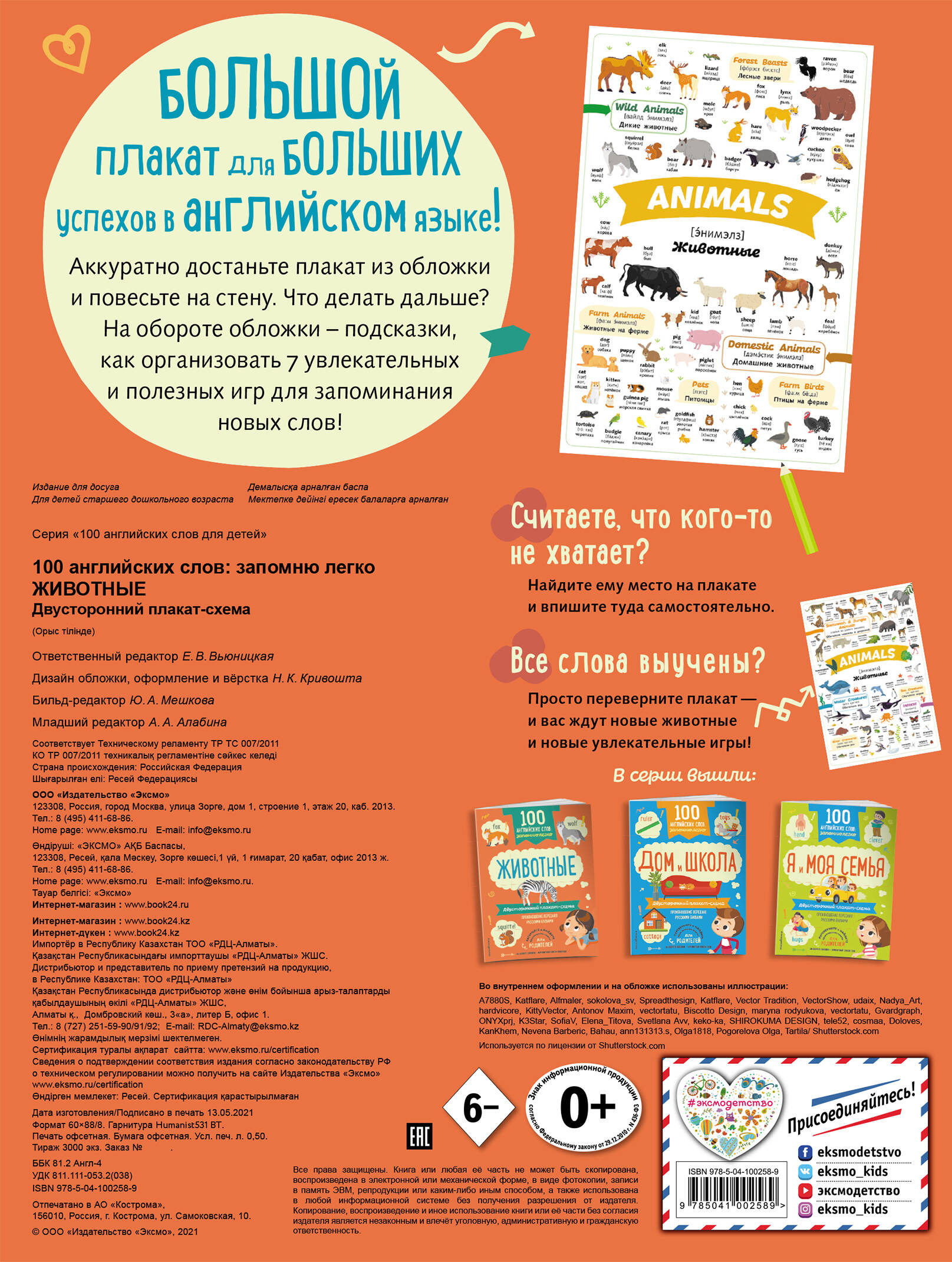 Аннотация: 100 английских слов: запомню легко. Животные (двусторонний плакат-схема)