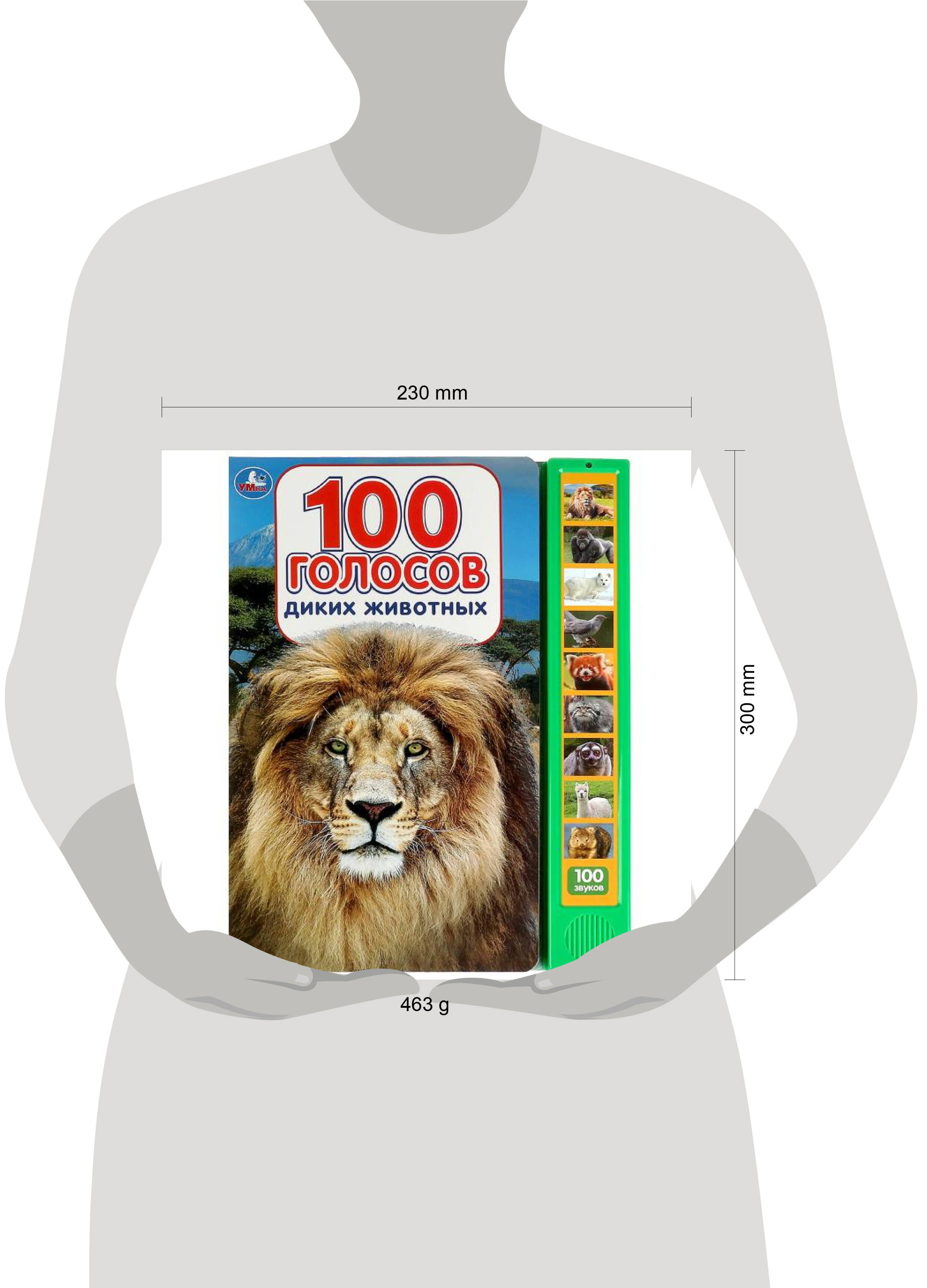 Озвученная книга "100 голосов животных" ТМ "УМка" станет отличным подарком для маленького любознайки: - 10 звуковых кнопок - 100 голосов разных животных - интересные факты о животных - развивающие вопросы - красочные иллюстрации - плотные страницы Яркая книга познакомит ребёнка с видами животных и их голосами, а интересные задания и яркие картинки помогут закрепить полученную информацию. На первых 9-ти кнопках представлено по 1-му голосу животного, изображённого на них, на последней кнопке - все другие голоса из заявленных 100. Чтение озвученной книги ТМ "УМка" и игра с ней способствуют развитию: - музыкального слуха - внимания - памяти - фантазии - мелкой моторики Объём: 10 стр. Формат: 233 х 302 мм. Материал: пластмасса + картон. Работает от 3-х батареек типа LR44 (в комплекте). Рекомендовано детям старшего дошкольного возраста.| Издательство | С-Маркет ООО |