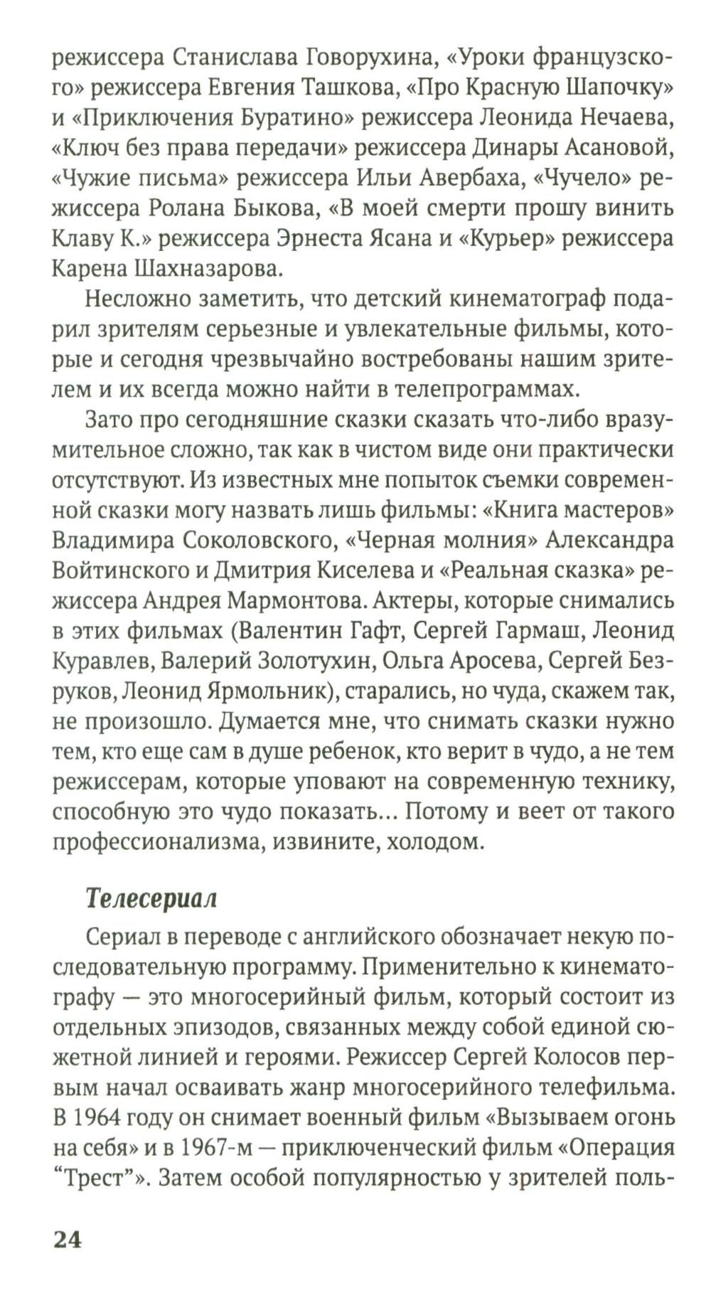 Фильмы советской эпохи неслучайно вписали золотые страницы в историю мирового кинематографа. Цель этой книги - как можно скорее превратить читателя в зрителя. Чтобы на примере лучших образцов отечественного кинематографа он смог оценить блестящую игру актеров прошлых лет, а также великолепные режиссерские и операторские работы. Почувствовать дух эпохи непредвзято, где-то улыбнувшись светлой наивности, а где-то услышать эзопов язык автора сценария. Приятного вам чтения и просмотра!| Издательство | Проспект |