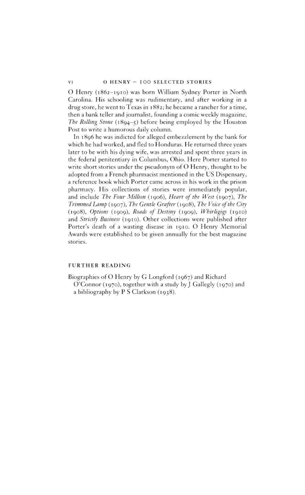 This selection of a hundred of O. Henry's succinct tales displays the range, humour and humanity of a perennially popular short-story writer. Here Henry gives a richly colourful and exuberantly entertaining panorama of social life, ranging from thieves to tycoons, from the streets of New York to the prairies of Texas. These stories are famed for their 'trick endings' or 'twists in the tail': repeatedly the plot twirls adroitly, compounding ironies. Indeed, O. Henry's cunning plots surpass those of the ingenious rogues he creates. His style is genial, lively and witty, displaying a virtuoso's command of language and allusion. This great collection offers delights for the mind, imagination and emotions.| Издательство | Wordsworth |