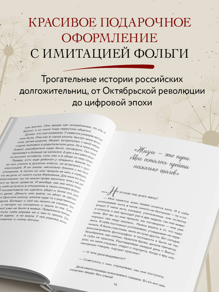 Аннотация: 100 лет жизни. Истории ровесниц века, вдохновляющие жить полной жизнью