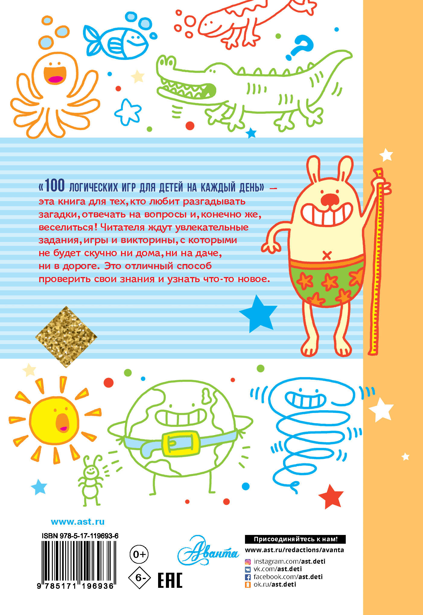 «100 логических игр для детей на каждый день» - эта книга для тех, кто любит разгадывать загадки, отвечать на вопросы и, конечно же, веселиться! Читателя ждут увлекательные задания, игры и викторины, с которыми не будет скучно ни дома, ни на даче, ни в дороге. Эта отличный способ проверить свои знания и узнать что-то новое.| Издательство | ИЗДАТЕЛЬСТВО "АСТ" |