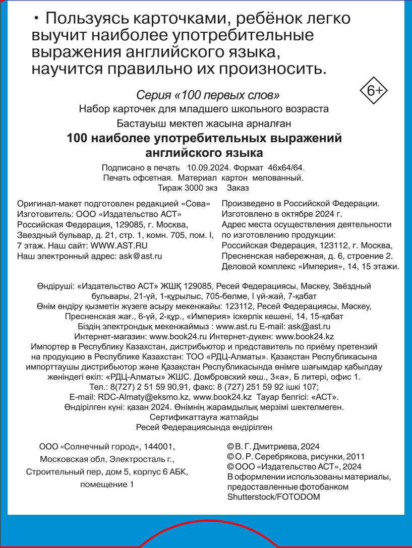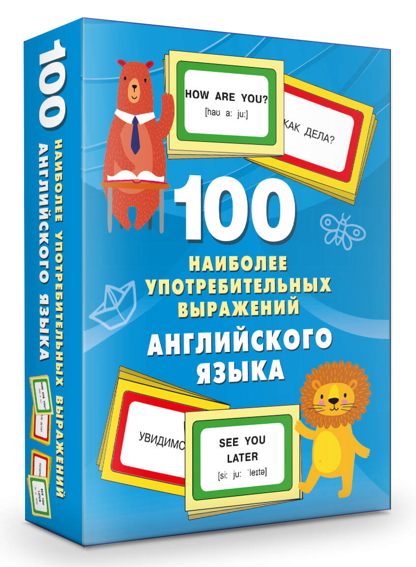 «100 наиболее употребительных выражений английского языка» - это комплект карточек для детей, начинающих изучать английский язык. В наборе - цветные двусторонние карточки с словосочетаниями, часто используемыми в разговорной английской речи. Для каждого словосочетания дана транскрипция. Благодаря занятиям по карточкам ребёнок в увлекательной игровой форме выучит самые важные английские слова и выражения.