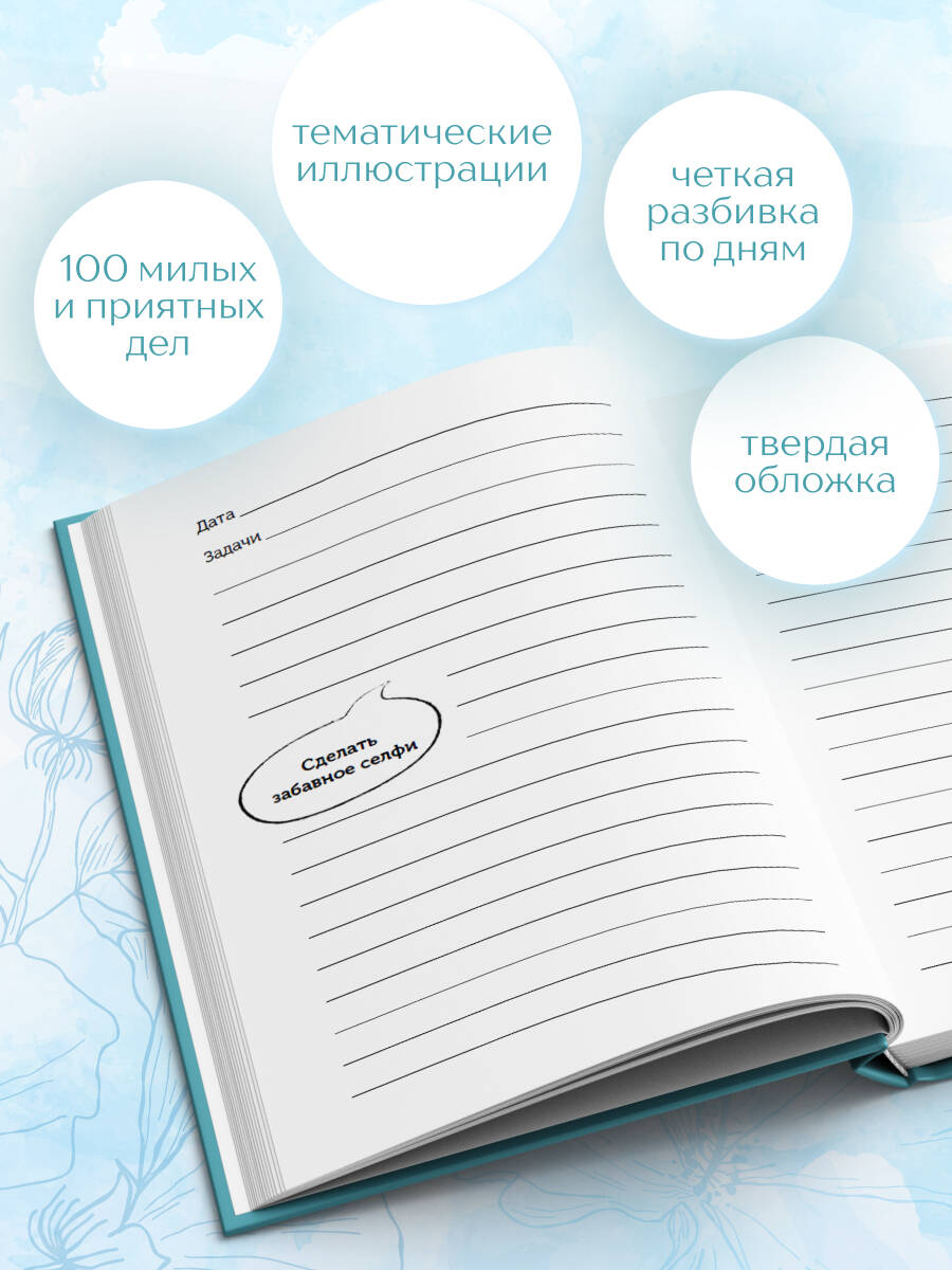 Позитивный планер для поднятия настроения. Внутри него вы найдете 100 милых и приятных дел - маленьких радостей, а еще забавные тематические иллюстрации, которые сделают планирование интереснее. Удобный формат ежедневника, большие поля для записи задач, четкая разбивка по дням.| Издательство | ООО "Издательство "Эксмо" |