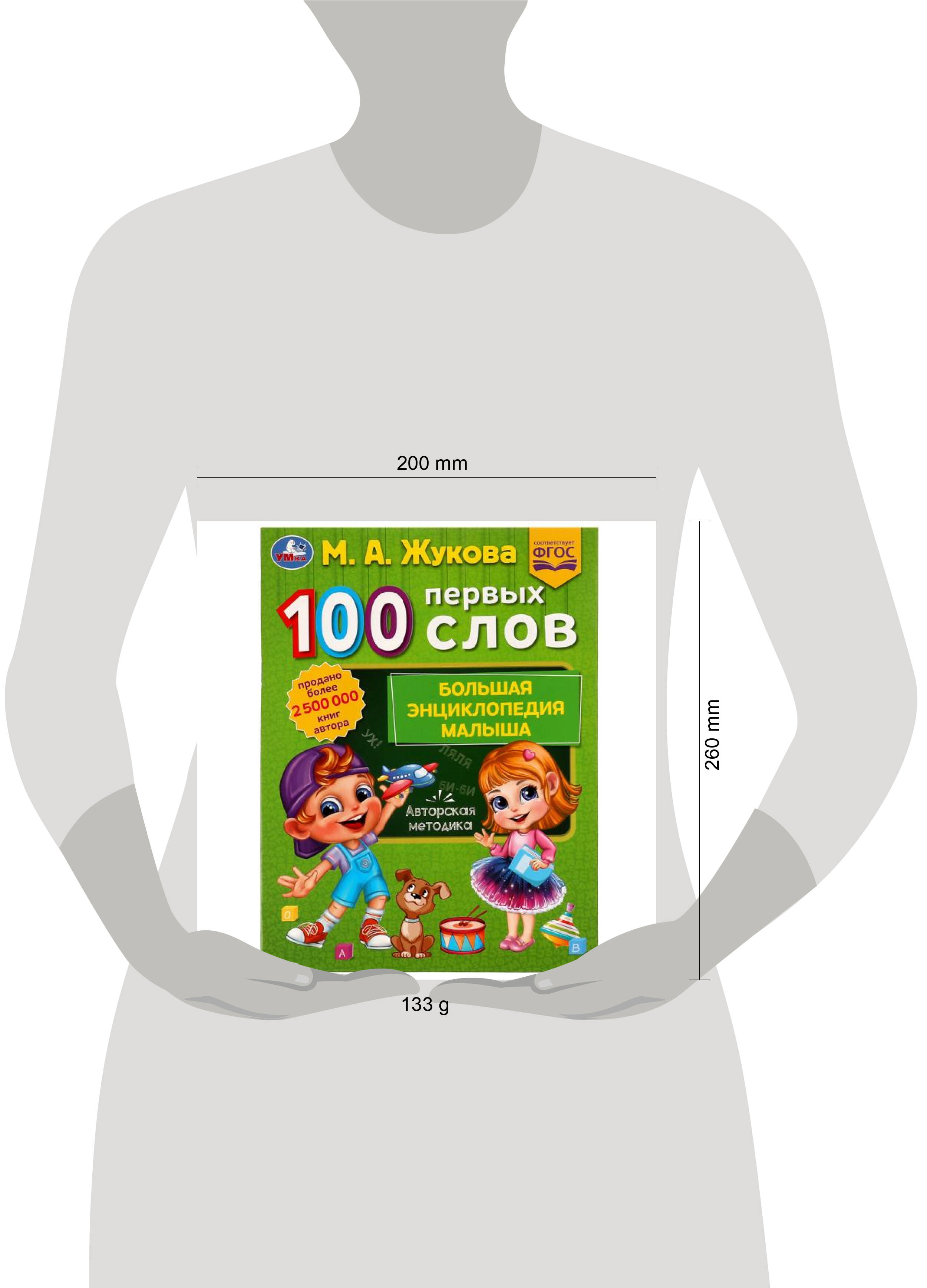 Аннотация: 100 ПЕРВЫХ СЛОВ. М.А.Жукова. Большая энциклопедия малыша. 197х260мм. Скрепка. 32стр. Умка в кор.30шт