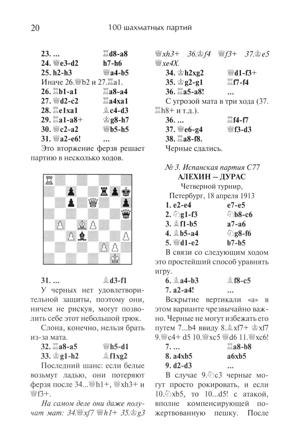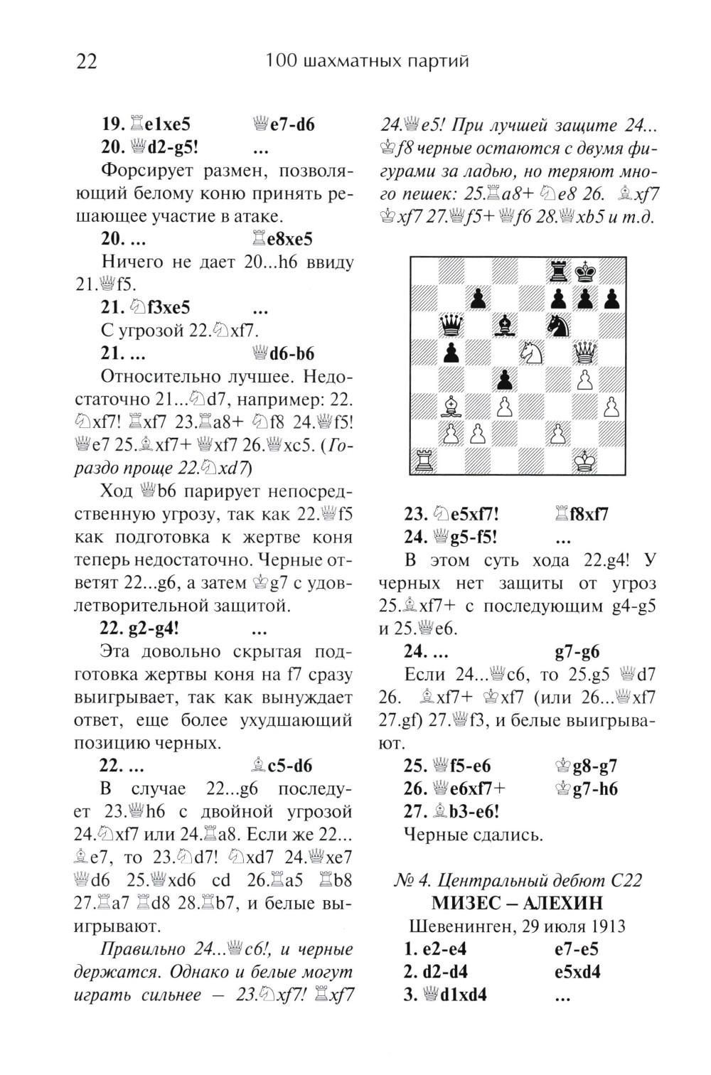 Цель этой книги - представить читателю в концентрированном виде всё самое лучшее, что было создано за доской выдающимся русским шахматистом Александром Алехиным и им самим прокомментировано. 100 партий, вошедших в сборник, являются настоящими жемчужинами шахматного творчества и во всем блеске раскрывают яркую комбинационную фантазию, тонкое стратегическое мастерство, филигранную эндшпильную технику и непревзойденное комментаторское искусство четвертого чемпиона мира. Изучая партии русского шахматного гения, вы, безусловно, повысите свое мастерство и получите огромное эстетическое удовольствие. Специальная редакция книги выполнена международным мастером М. Ноткиным. В его примечаниях, выделенных курсивом, учтены достижения современного компьютерного анализа. Для широкого круга любителей шахмат.| Издательство | Русский шахматный дом |