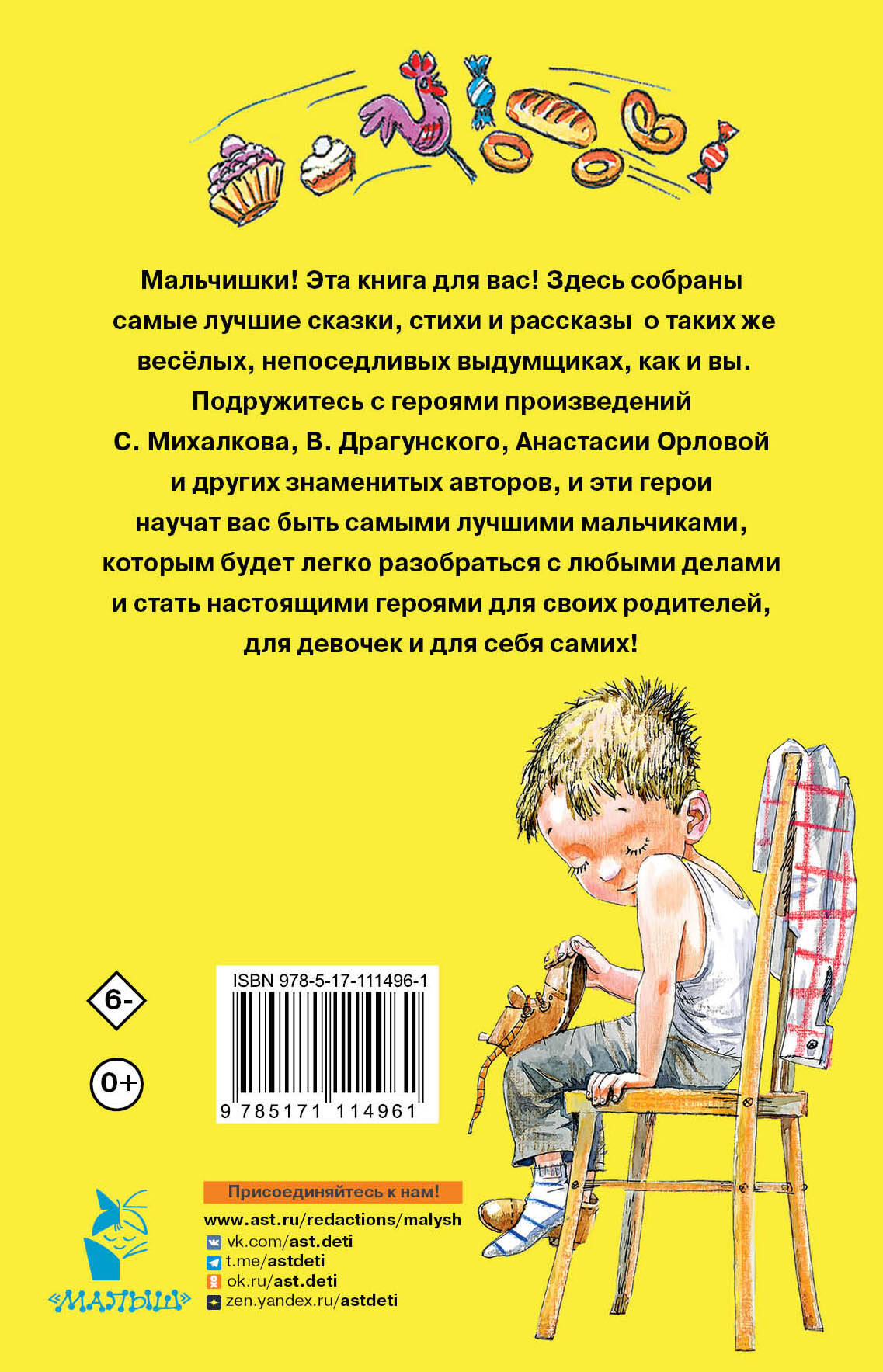 Мальчишки! Эта книга для вас! Здесь собраны самые лучшие сказки, стихи и рассказы о таких же весёлых, непоседливых выдумщиках, как и вы. Подружитесь с героями произведений С. Михалкова, В. Драгунского, Анастасии Орловой и других знаменитых авторов, и эти герои научат вас быть самыми лучшими мальчиками, которым будет легко разобраться с любыми делами и стать настоящими героями для своих родителей, для девочек и для себя самих!| Издательство | ИЗДАТЕЛЬСТВО "АСТ" |