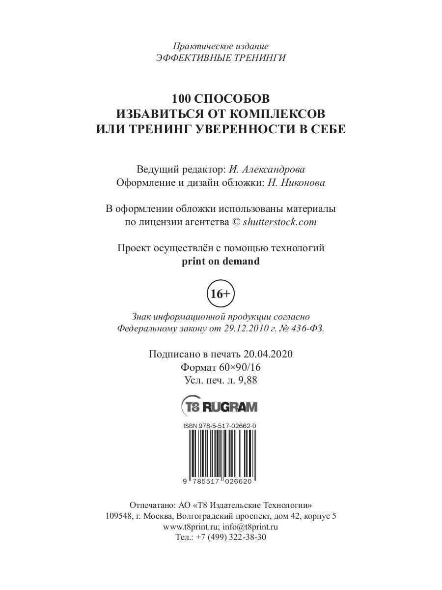 Аннотация: 100 способов избавиться от комплексов или тренинг уверенности в себе