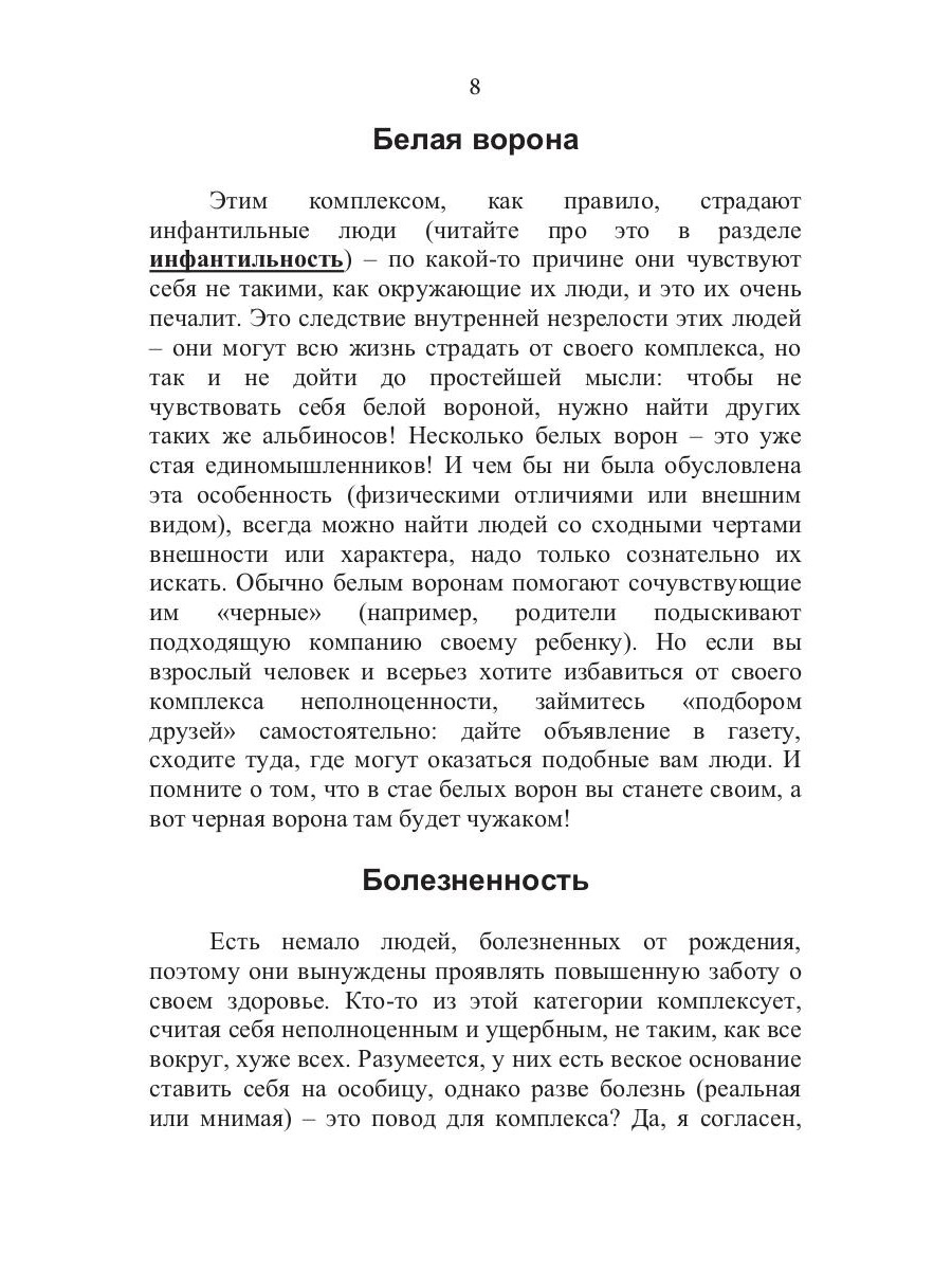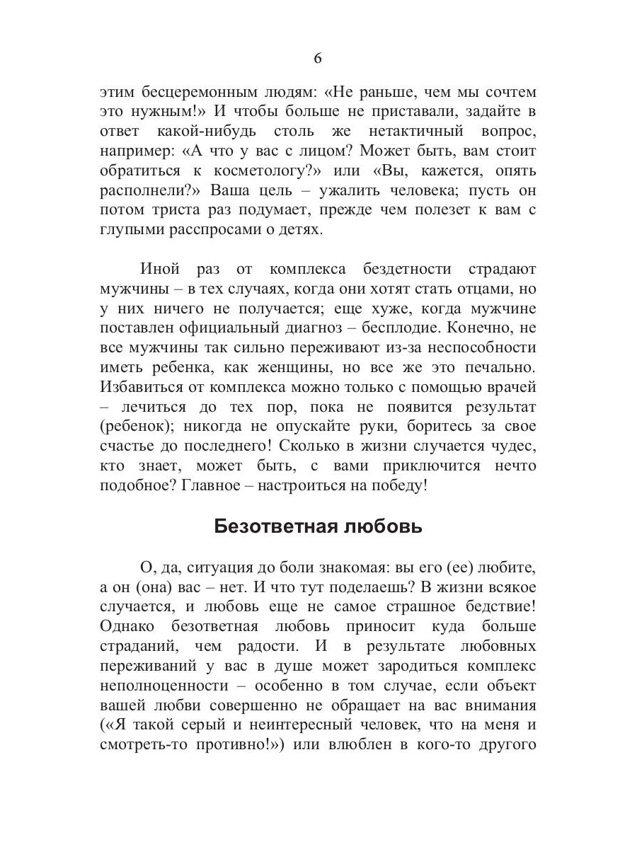 Комплексы… А у кого их нет? Редкий человек может смело заявить, что комплексы не мешают ему жить и радоваться жизни по той простой причине, что их у него просто нет. Зато наверняка каждый знает, что тот или иной вредный комплекс мешает ему в жизни. На комплексы взваливают вину за неудачи и провалы, не пытаясь, однако, бороться с ними. А это обязательно надо сделать, особенно сейчас, когда вы держите в руках это издание. Автор подробно рассматривает все известные комплексы и предлагает свои методы борьбы с ними. Не упустите шанс обрести радость в жизни, пока борьба с комплексами возможна.| Издательство | Т8 RUGRAM |