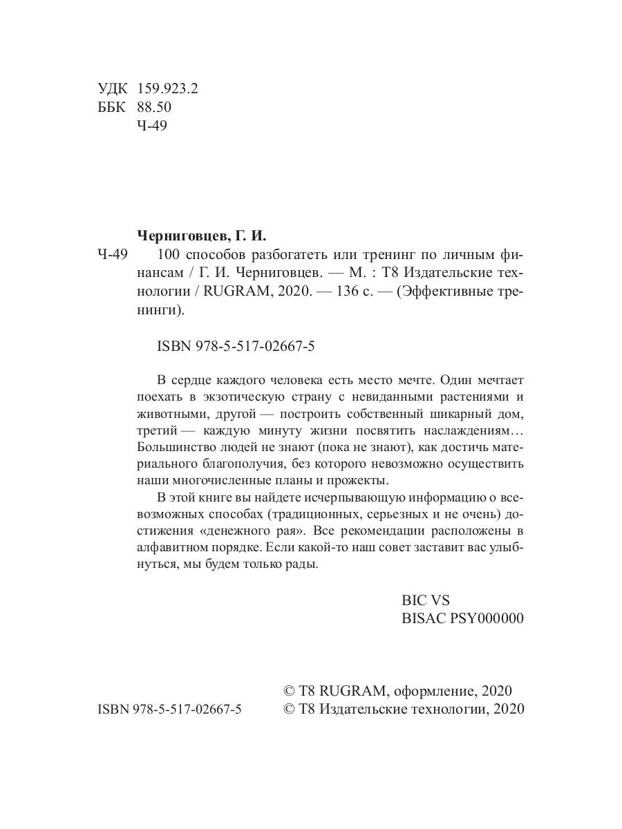 Аннотация: 100 способов разбогатеть или тренинг по личным финансам