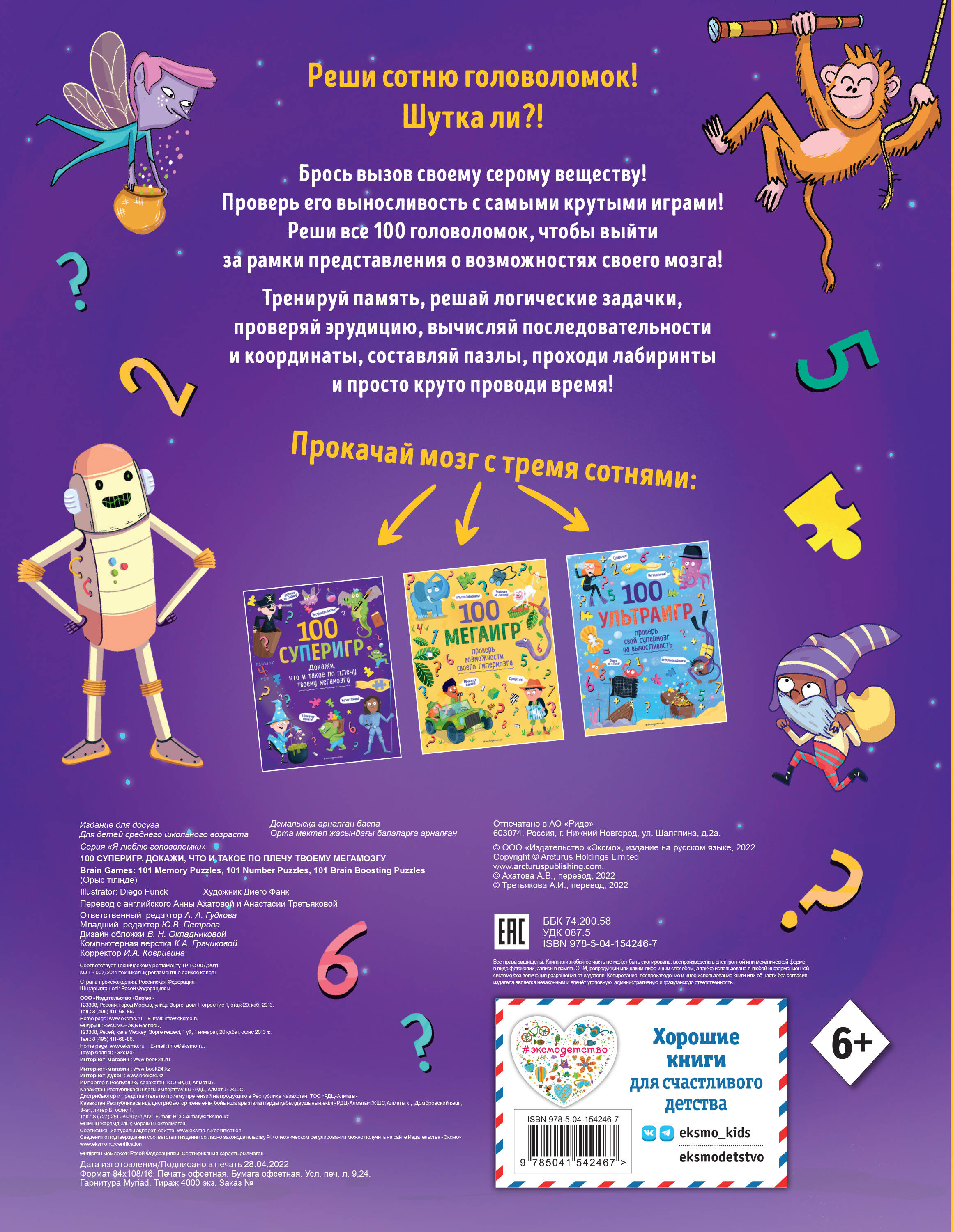 Масштабная тренировка извилин продолжается. Чувствуешь постоянную усталость, тебе все тяжелее думать на уроках? Ты просто не в форме! Но 100 игр встряхнут твой мозг по полной! Верни упругость своему серому веществу с нашим тренировочным курсом суперголоволомок! Проведи умопомрачительную тренировку! Теперь на твоем счету будет еще больше головоломок. А ну-ка, справишься? Запасись цветными карандашами. Твои извилины ждет нешуточная встряска! Впереди целых 100 ярких страниц игр и долгие часы увлекательного досуга. В этой книге можно делать всё: раскрашивать, рисовать, считать, проходить лабиринты и игры-бродилки, решать, разгадывать и многое другое. А если сдюжишь, прими новый вызов - хватай следующую книгу головоломок!| Издательство | Эксмо |