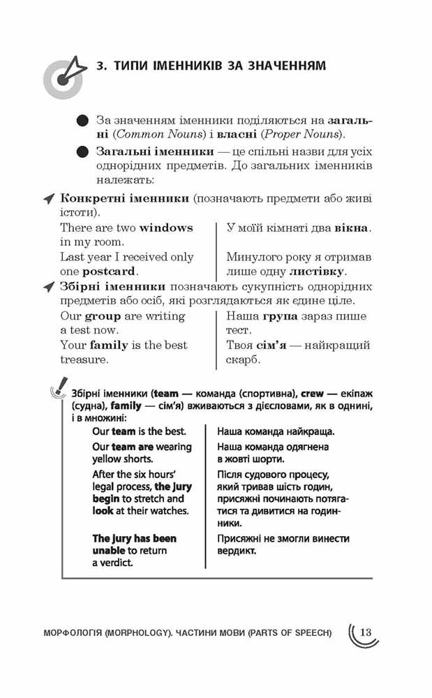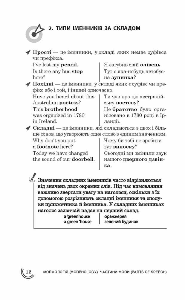 ВІДПОВІДАЄ ЧИННІЙ ПРОГРАМІ МОН УКРАЇНИ. Довідник містить 100 найважливіших тем усього шкільного курсу. Інформація представлена в наочній формі чітко на одну сторінку, що дозволяє швидко знайти і запам'ятати необхідну тему. Довідник складається з двох розділів: Розділ «Морфологія. Частини мови (Morphology. PartsofCpeech)» містить відомості про частини мови, граматичні категорії та форми, систему словозміни. У поданому матеріалі особливості граматики сучасної англійської мови порівнюються з українськими граматичними формами. Розділ «Синтаксис. Речення (Syntax. TheSentence)» висвітлює основні принципи та закономірності граматичної будови англійської мови із сучасним підходом до аналізу мовних одиниць. 100 тем це: Найважливіші теми зі шкільного курсу Одна тема за 5 хвилин! Експрес-підготовка до ДПА, ЗНО, контрольної або самостійної роботи Одна тема - з одного погляду Довідник для учнів, студентів, вчителів, батьків. «100 тем» - увесь шкільний курс у 100 темах!| ISBN | 978-617-7385-64-5 |