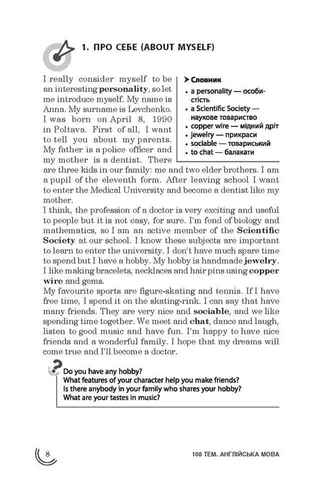 Аннотация: 100 тем. Англійська мова. Розмовні теми