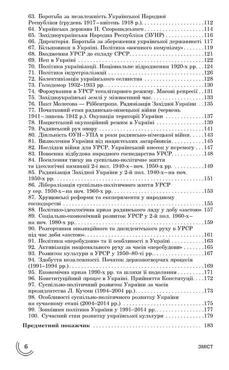 ВІДПОВІДАЄ ЧИННІЙ ПРОГРАМІ МОН УКРАЇНИ. Довідник містить матеріал усього шкільного курсу історії України, відібраний у 100 найбільш важливих тем. Інформація представлена в наочній формі чітко на одну сторінку, що дозволяє швидко знайти і запам'ятати необхідну тему, самостійно систематизувати знання, зосередити увагу на основних поняттях, термінах, визначеннях. Матеріал структурований за часовими проміжками, наочно представлений, що сприяє його легкому засвоєнню. Історичні події викладені конспективно, найбільш важливі моменти виділені окремо. Для зручності запам'ятовування дати виділені і винесені в окремий блок. Завдяки цьому підготовка до ЗНО історія України стане більш простою і ефективною. Довідник охоплює історичні події наступних етапів: Давня історія Середньовіччя Нова історія Новітня історія України. У першому розділі описано утворення держави Київська Русь, її розквіт і історичне значення для державності України. Нова історія починається з 18 століття. Діяльність Богдана Хмельницького, Івана Мазепи, розвиток і етапи національного руху представлені у другій частині. Історія країни в 20-21 столітті описується в третьому розділі: революція, друга світова війна, боротьба за незалежність - все це детально представлено на сторінках книги. 100 тем це: Найважливіші теми зі шкільного курсу Бліц-підготовка до ДПА, ЗНО, контрольної або самостійної роботи Довідник для учнів, студентів, вчителів, батьків. "100 тем" - увесь шкільний курс у 100 темах!| ISBN | 978-966-262-371-0 |