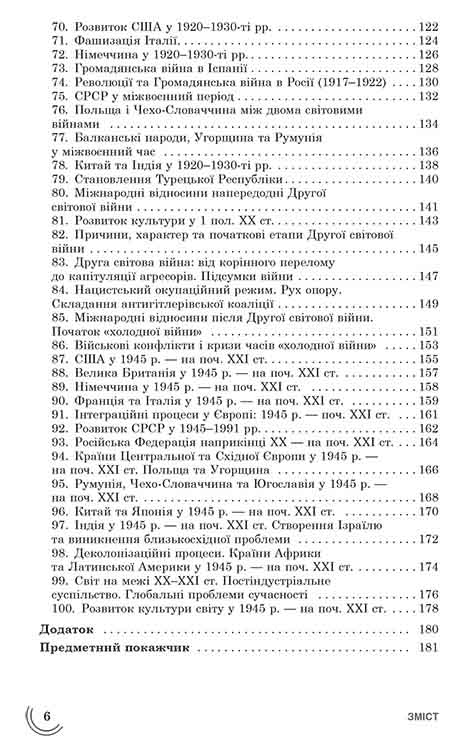 ВІДПОВІДАЄ ЧИННІЙ ПРОГРАМІ МОН УКРАЇНИ. Довідник містить матеріал усього шкільного курсу всесвітньої історії, відібраний у 100 найбільш важливих тем. Інформація представлена в наочній формі чітко на одну сторінку, що дозволяє швидко знайти і запам'ятати необхідну тему. Довідник «100 тем. Всесвітня історія» допоможе повторити важливі віхи світової історії та систематизувати знання. Він стане надійним помічником у підготовці до іспитів або тестів. Надає можливість самостійно систематизувати знання, зосередити увагу на основних поняттях, термінах, визначеннях. Посібник включає в себе: історію стародавнього світу історію середніх віків нову історію новітню історію. Епохальні події Стародавньої Індії, Китаю, Греції представлені в першій частині. Велика Римська імперія: її зародження, розквіт і падіння знайшло відображення в 4 темах довідника. Велика частина історії середньовіччя присвячена Європі, саме там відбувалися важливі історичні процеси. У посібнику присутня інформація про історичні події на території Азії, Америки, Африки. Нова історія включає в себе період з 16 століття до початку 20 і завершується першою світовою війною. Новітня історія розповідає про події 20 століття. Тут розглянуті такі теми як Друга Світова Війна, розвиток великих країн в післявоєнний період, деколонізаційні процеси. Кожна тема містить тезовий опис історичних подій, дати для зручності запам'ятовування винесені в окремий блок. Невеликі інформаційні вставки «Запам'ятай» несуть інформацію про історично значущих персонах, події, знайомлять з новими термінами і поняттями. 100 тем це: Найважливіші теми зі шкільного курсу Одна тема за 5 хвилин! Бліц-підготовка до ДПА, ЗНО, контрольної або самостійної роботи Одна тема - з одного погляду Довідник для учнів, студентів, вчителів, батьків. "100 тем" - весь шкільний курс у 100 темах!| ISBN | 978-966-262-377-2 |