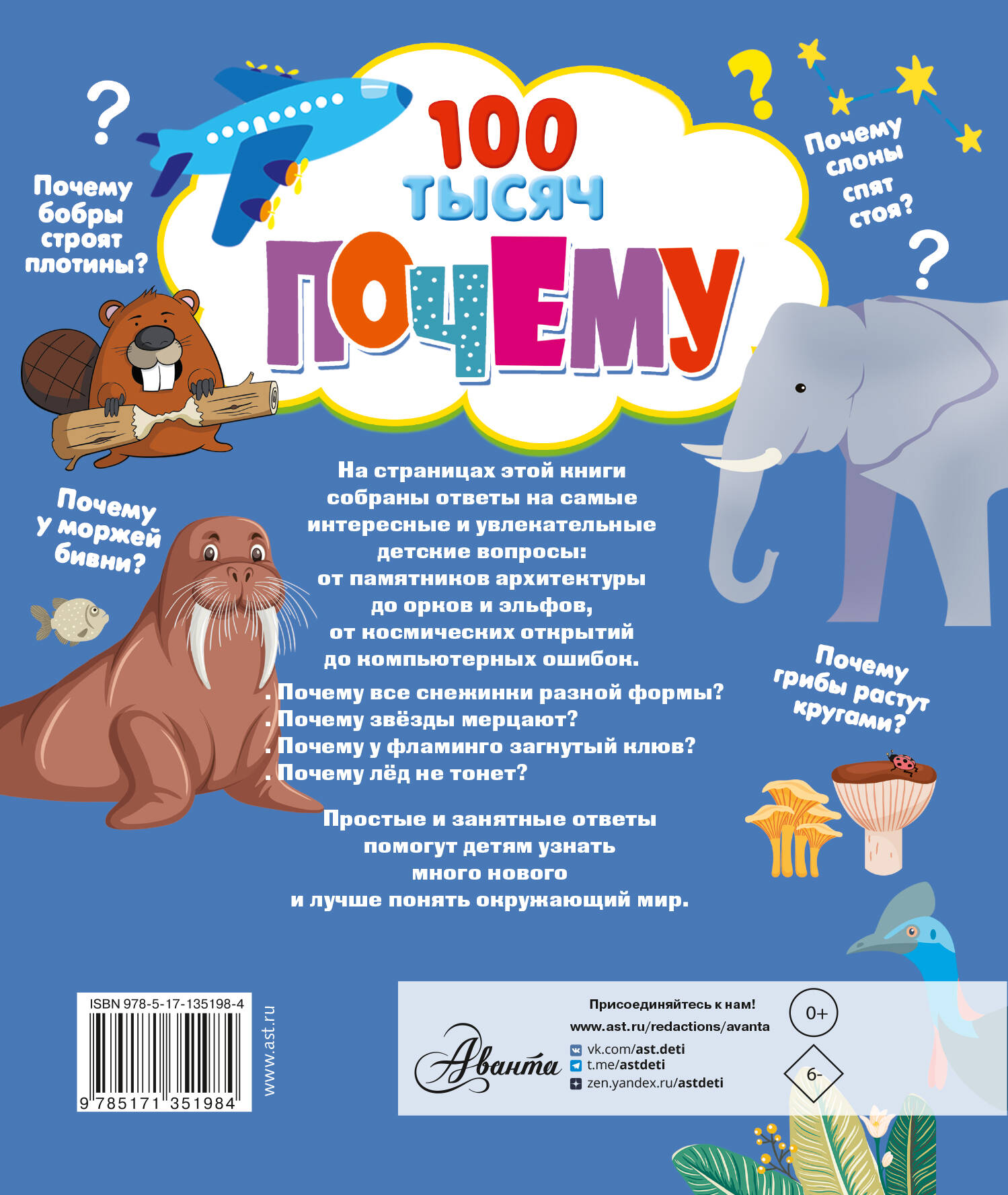 Под обложкой книги "100 тысяч почему" читатель найдёт множество ответов на самые разные вопросы. О животных и растениях, о технике и удивительных открытиях, о науке, космосе, природных явлениях. Разнообразие тем позволит каждому найти для себя что-то полезное и увлекательное. Ведь, задавая вопросы, мы познаём мир. Для среднего школьного возраста.