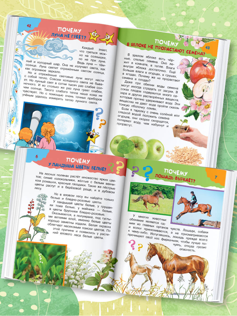 В книге «100 тысяч почему» собраны ответы на самые интересные вопросы о науке, технике, природе, искусстве, которые только может задать юный почемучка: кто придумал названия месяцам, для чего киты пускают фонтаны, на каких камнях работают механические часы, долго ли живут грибы, почему компьютерный диск называется «винчестером», почему в Перу полосы на аэродроме длиннее.| Издательство | ИЗДАТЕЛЬСТВО "АСТ" |