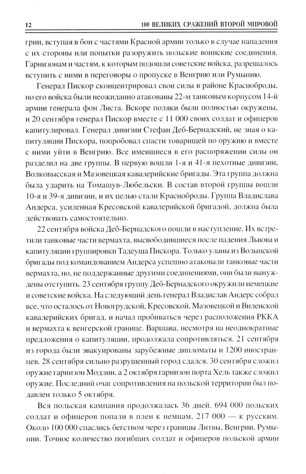Книга известного военного историка Ю.Н. Лубченкова рассказывает о самых великих сражениях Второй мировой, полыхавших в Северной Африке и в Приполярье, на тихоокеанских островах и на Среднерусской равнине, в горах Балканского полуост-рова и в водах Атлантики. Показаны успехи и неудачи как стран антигитлеровской коалиции, так и держав «оси». Почему потерпело поражение Варшавское восстание? Кому было выгодно «вероломное нападение» японской авиации на Пёрл-Харбор? Мог ли Ленинград не оказаться в кольце блокады? Почему так долго англо-американские союзники тянули с открытием второго фронта в Европе, и что происходило в первые дни высадки в Нормандии? На эти и другие вопросы отвечает книга «100 великих сражений Второй мировой».| Издательство | Вече |