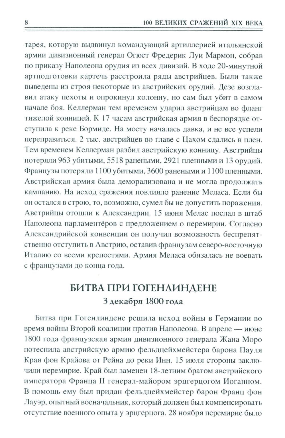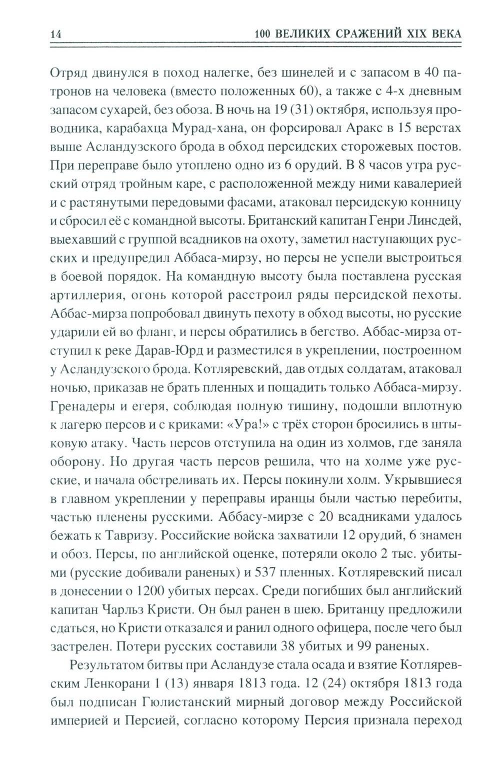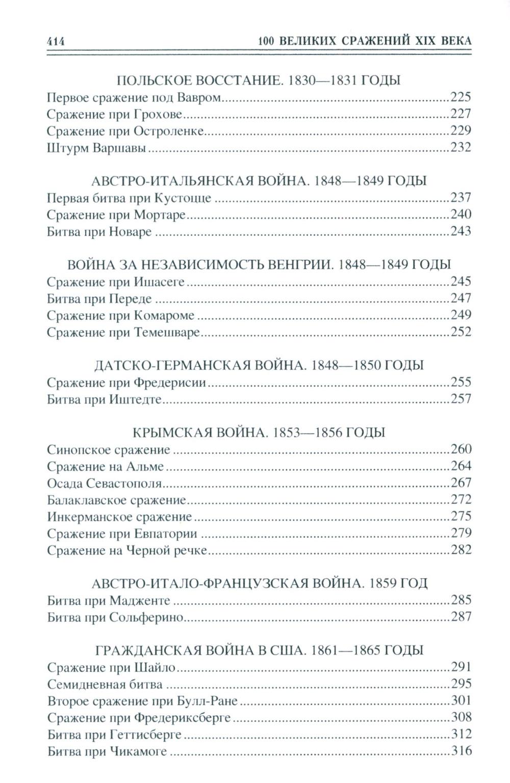 История XIX века богата не только выдающимися научными открытиями и великими свершениями в искусстве. В это время в мире происходили грандиозные политические и социальные потрясения, повлекшие за собой революции и войны... Каждая из этих войн памятна современникам одним либо несколькими сухопутными или морскими сражениями, решившими их исход. Трафальгарское сражение, сражение при Фридланде, Бородинская битва, Лейпцигское сражение, оборона Севастополя, битвы при Седане, при Геттисберге, сражение при Шейнове... О ста самых масштабных и кровопролитных сражениях XIX века рассказывает очередная книга серии.| Издательство | Вече |