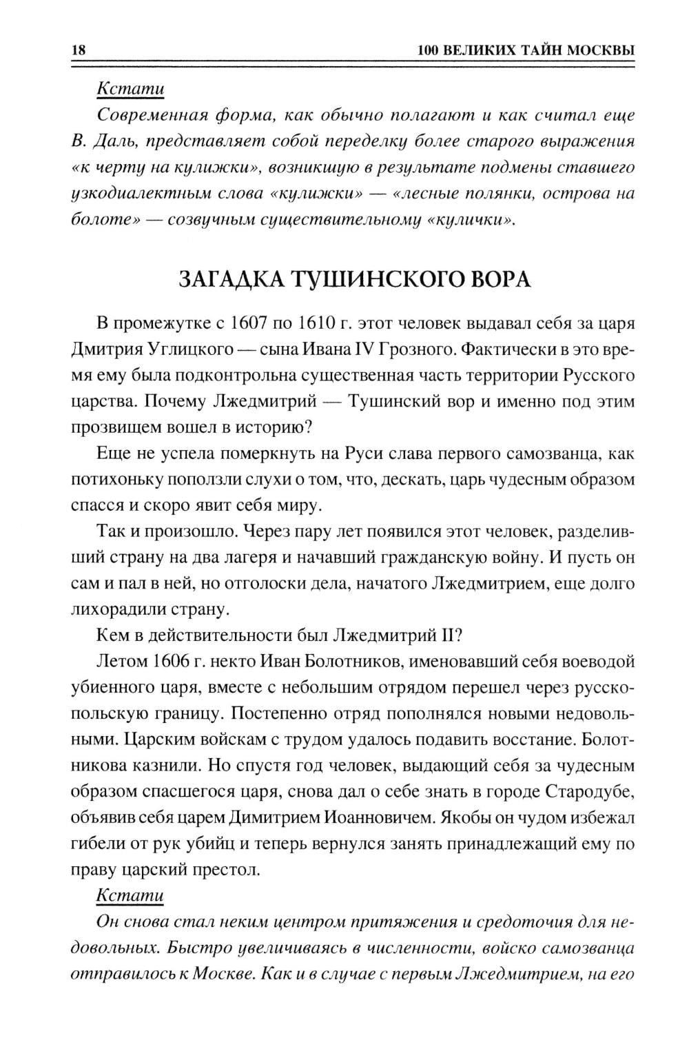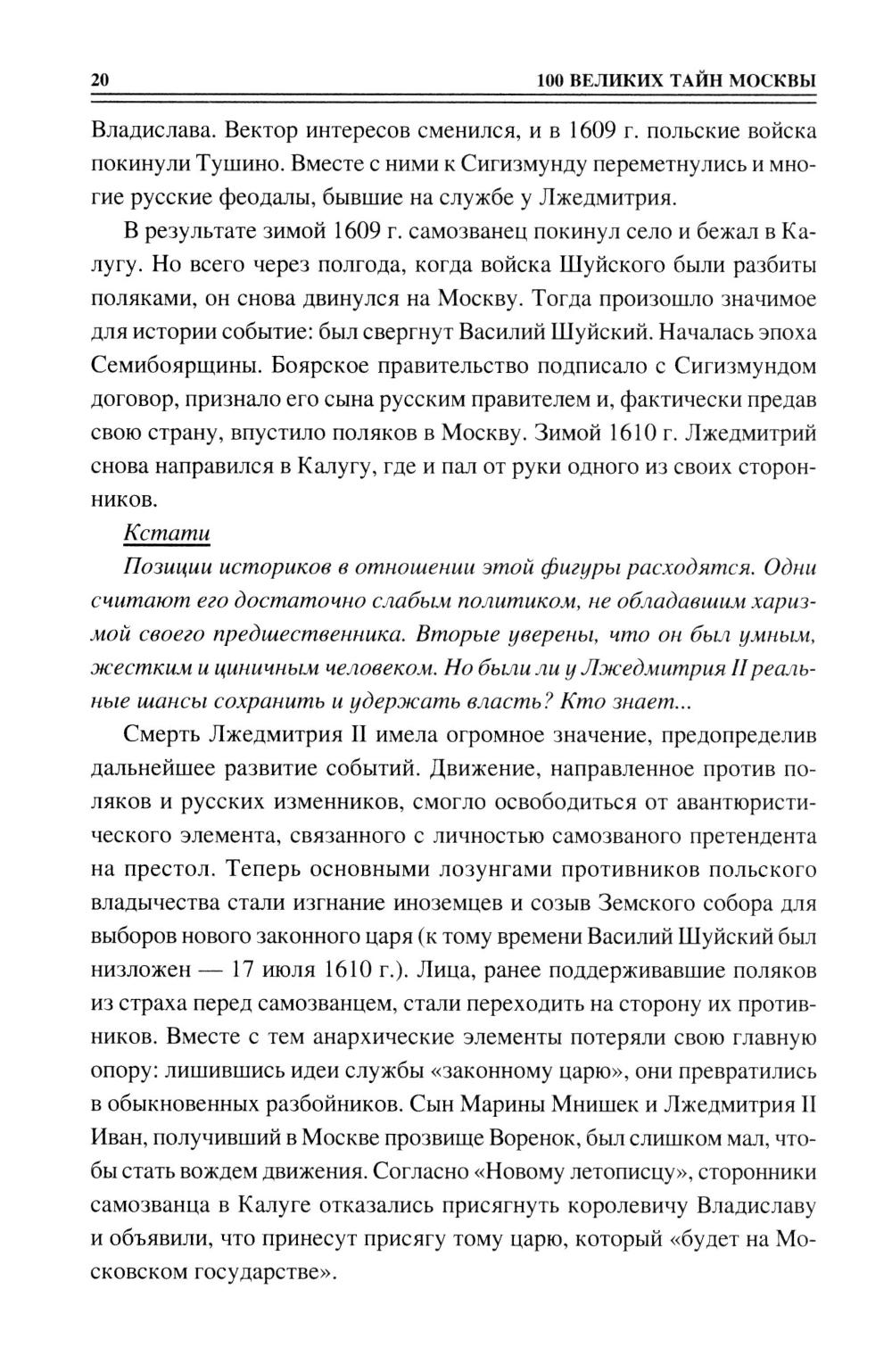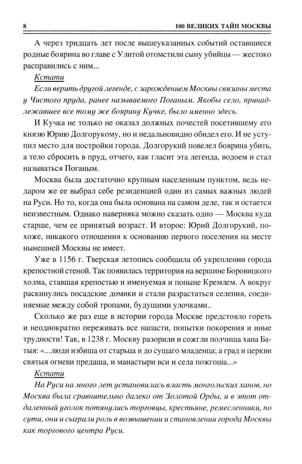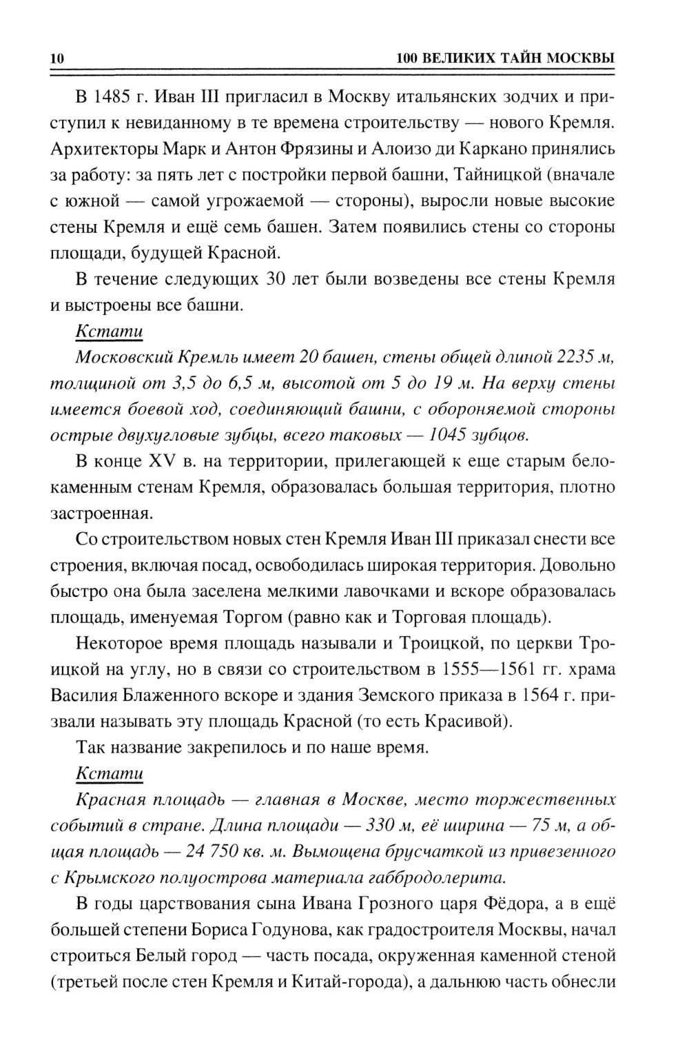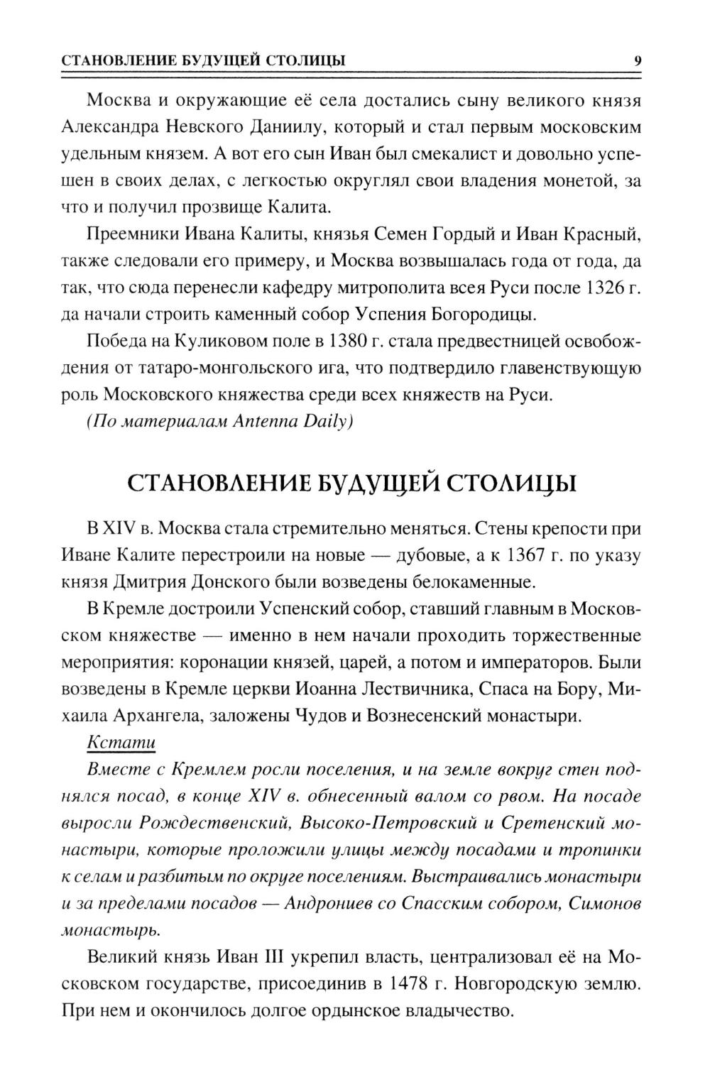 Москва знаменита своей древней историей и великими людьми некогда населявшими ее. Как и многие столицы мира ее стены и мостовые хранят множество тайн, разгадать которые вот уже не один век пытаются исследователи. Таинственные особняки, исчезнувшие улицы и переулки, многокилометровые подземные лабиринты и секретные бункеры, печальные некрополи и богатые загадочным прошлым башни, площади и проспекты. Об этом и многом другом рассказывает очередная книга серии.