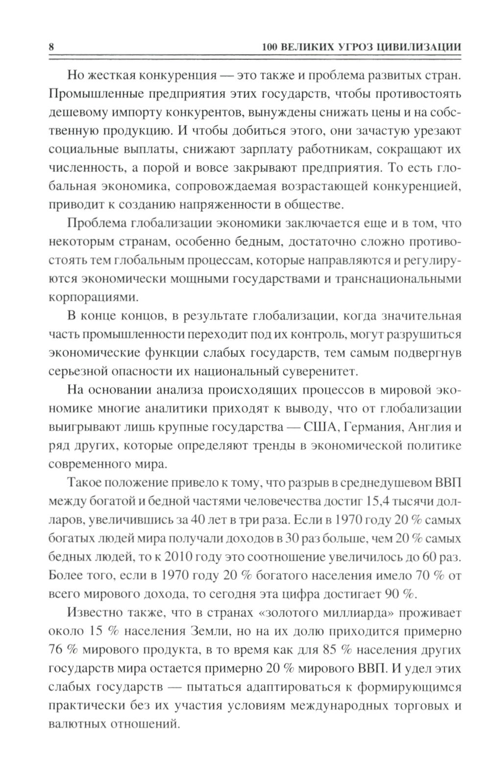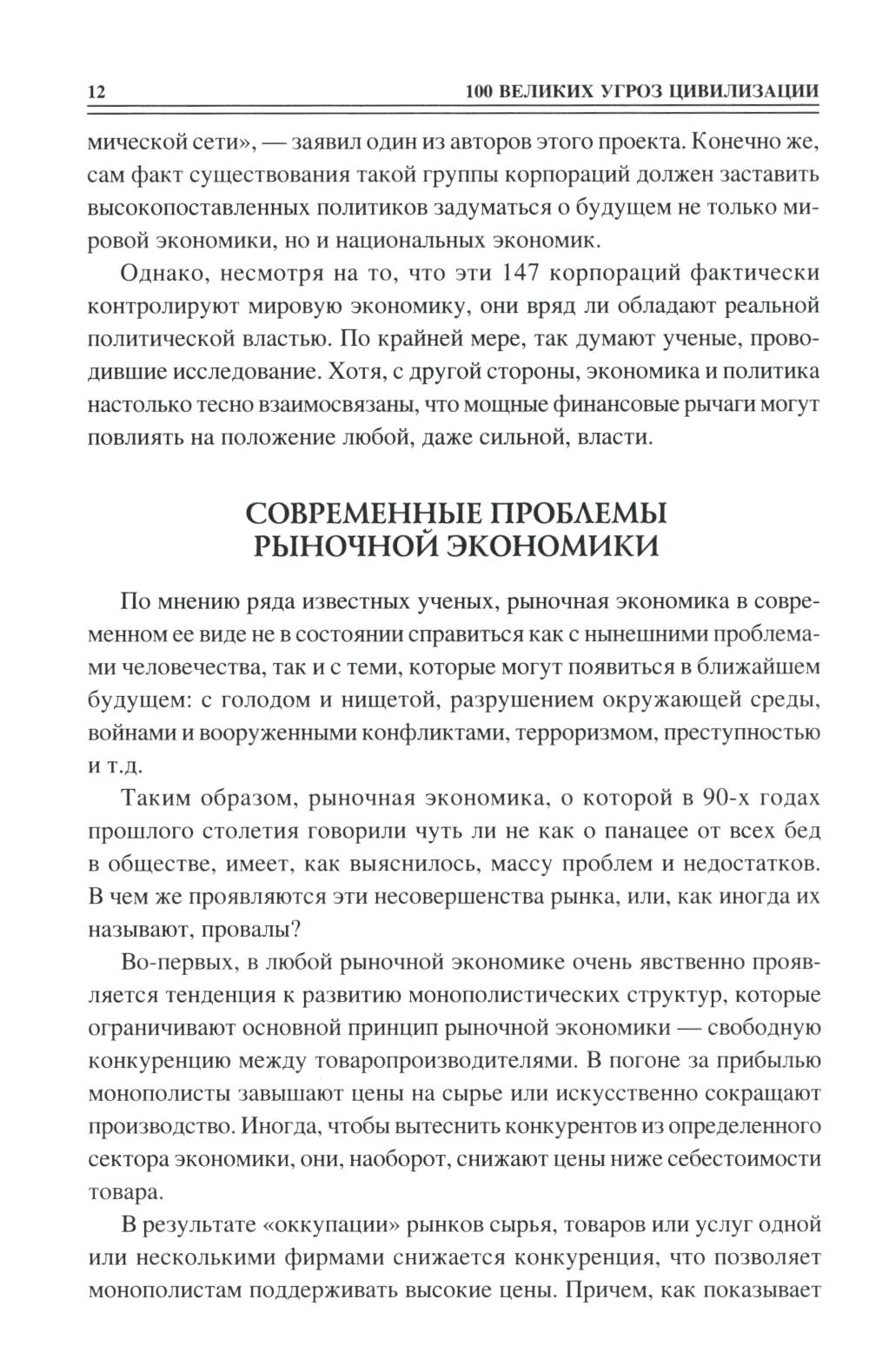 Человечество вступило в третье тысячелетие. Что приготовил нам XXI век? С момента возникновения человечество волнуют проблемы безопасности. В процессе развития цивилизации люди смогли ответить на многие опасности природной стихии и общественного развития изменением образа жизни и новыми технологиями. Но сегодня, уже в новом тысячелетии, на очередном высоком витке спирали развития нельзя утверждать, что полностью исчезли старые традиционные виды вызовов и угроз. Более того, возникли новые опасности, которые многократно усилили риски возникновения аварий, катастроф и стихийных бедствий настолько, что проблемы обеспечения безопасности стали на ближайшее будущее приоритетными. О ста наиболее значительных вызовах и угрозах нашей цивилизации рассказывает очередная книга серии.| Издательство | Вече |