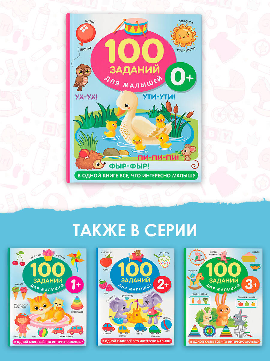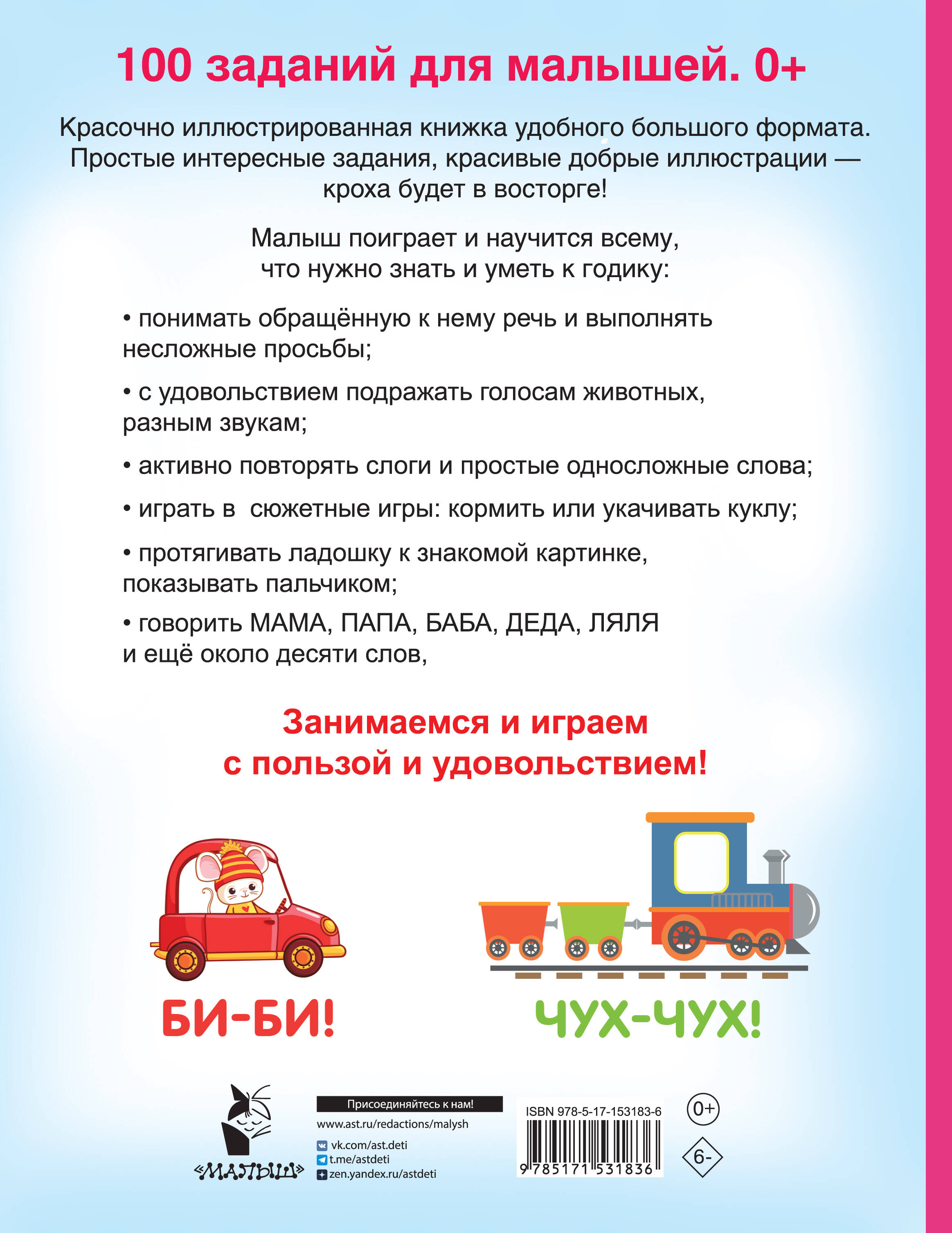 «100 заданий для малышей» - серия, основанная на многолетнем опыте раннего развития и обучения малышей. Интересные задания в картинках развивают речь, восприятие, внимание, память и мелкую моторику. Отличный помощник родителей для дополнительных занятий с малышом. В. Г. Дмитриева - успешный автор детских книг и развивающих пособий. Ее книги отличаются игровым подходом к обучению, написаны простым, доступным языком, который дает ребенку образец красивой, правильной речи. 100 заданий и ни одной скучной страницы! Детки влюбляются в нашу книжку и не выпускают ее из рук - проверено! • Книжка обязательно станет одной из любимых у малыша - красочные иллюстрации привлекут его внимание, разовьют познавательный интерес. • Маленькие уроки с любимой книжкой развивают образное внимание, логическое и абстрактное мышление, память и речь малышки, а также расширяют её кругозор и словарный запас. • Благодаря ярким веселым картинкам каждое задание станет маленькой игрой: полезной и интересной. Читайте книжку с малышом, удивляйтесь, радуйтесь, получайте удовольствие от общения и совместных игр!| Издательство | ИЗДАТЕЛЬСТВО "АСТ" |