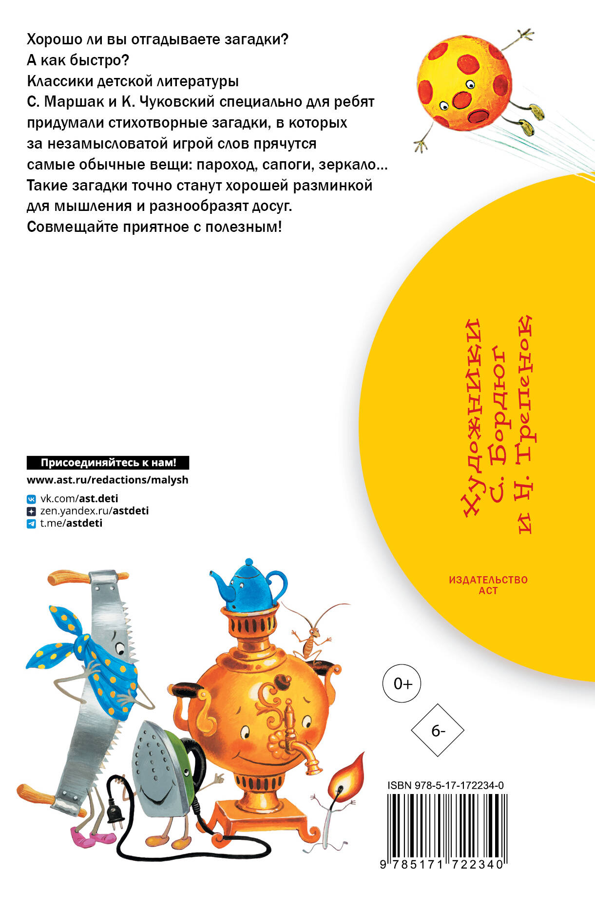 Хорошо ли вы отгадываете загадки? А как быстро? Классики детской литературы С. Маршак и К. Чуковский специально для ребят придумали стихотворные загадки, в которых за незамысловатой игрой слов прячутся самые обычные вещи: пароход, сапоги, зеркало… Такие загадки точно станут хорошей разминкой для мышления и разнообразят досуг. Совмещайте приятное с полезным!| Издательство | Издательство "АСТ" |