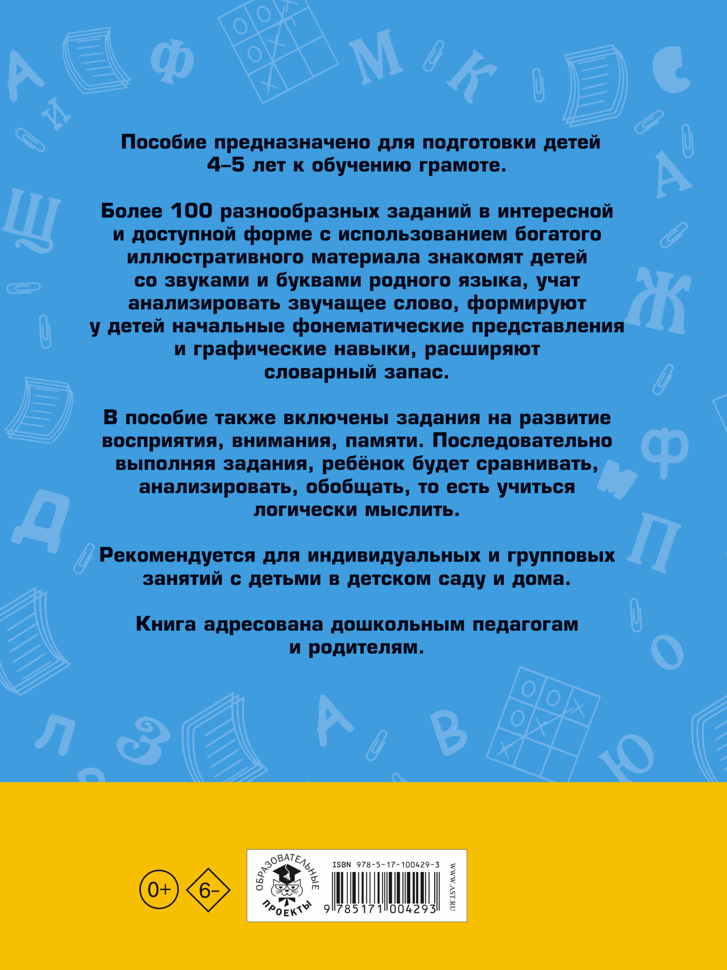 Аннотация: 100 занимательных упражнений с буквами и звуками для детей 4-5 лет