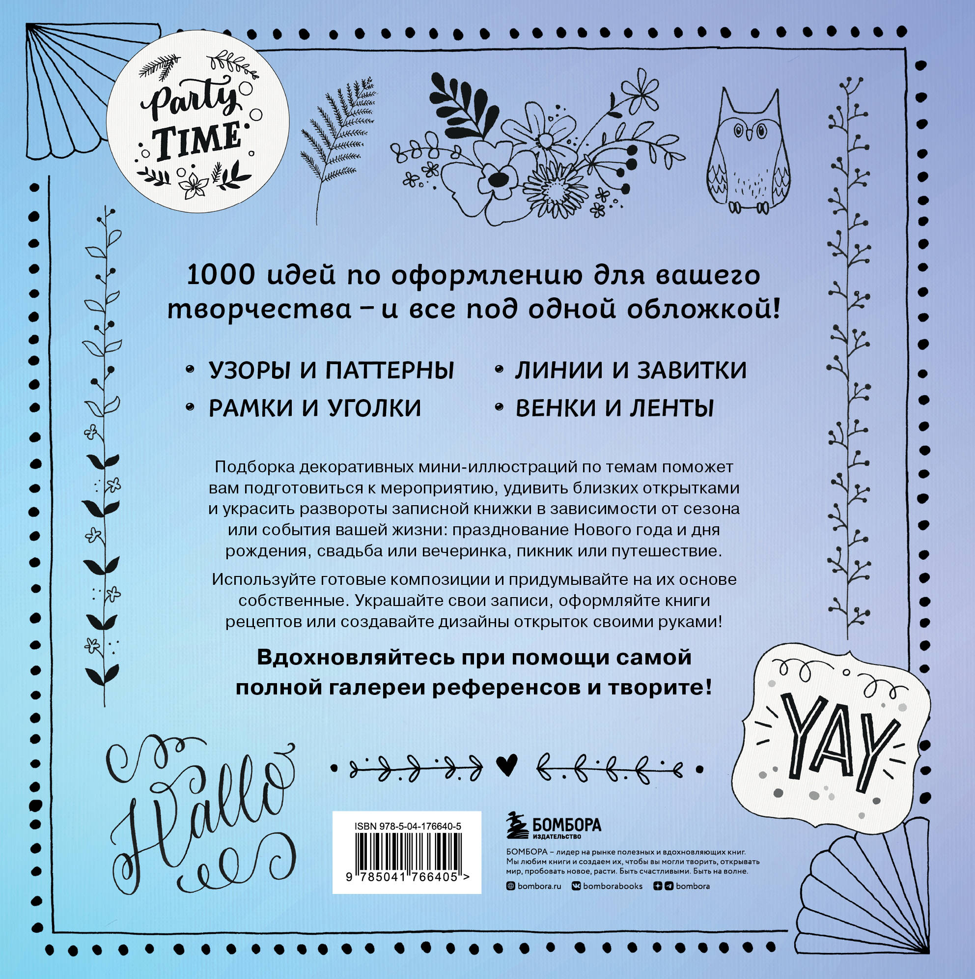 "1000 элементов оформления" - это полная коллекция уникальных идей и необычных приемов для вашего творчества, которая всегда под рукой! В одной книге собраны самые разные варианты декорирования: - узоры и паттерны - линии и завитки - венки, ленты и многое другое! Галерея референсов с тематическими мини-иллюстрациями поможет вам украсить личные записи или конспекты, а также придать будничным разворотам ежедневника оригинальности и эстетики. Подборка простых в исполнении рисунков по темам поможет подготовиться к мероприятию, удивить близких приятными открытками и украсить страницы записной книжки в зависимости от сезона и события. Празднование Нового Года или дня рождения, свадьба или вечеринка, путешествие к морю или выезд на природу - выбирайте среди тысячи идей и творите! Используйте готовые композиции, придумывайте на их основе собственные и украшайте свои записи, оформляйте книги рецептов или создавайте дизайны открыток своими руками! Вдохновляйтесь и творите!| Издательство | ООО "Издательство "Эксмо" |