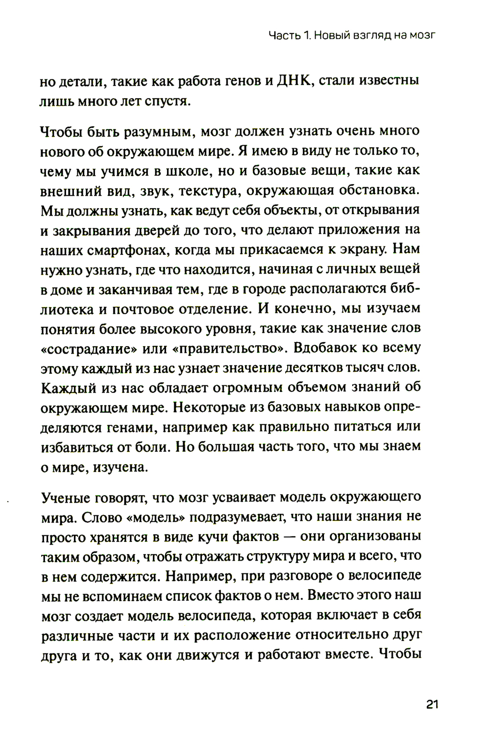 Несмотря на все достижения нейробиологии, мы мало продвинулись в решении ее главного вопроса: какова биологическая природа интеллекта? Автор предлагает ответ, построенный на сенсационном научном открытии. В книге он рассказывает о том, для чего нейроны коры головного мозга объединились в странные сообщества под названием «кортикальные колонки». В неокортексе их сто пятьдесят тысяч. Джефф Хокинс и его команда установили, что каждая колонка, составляющая кору головного мозга, создает собственную модель мира. В итоге образуется не одна модель, а тысячи, и наше восприятие - это коллективное решение кортикальных колонок, принятое ими путем голосования. Новый взгляд на деятельность головного мозга авторы идеи назвали теорией «тысячи мозгов». Они утверждают, что не искусственные нейронные сети, а открытые ими законы работы неокортекса лягут в основу развития искусственного интеллекта в будущем.| Издательство | Портал |