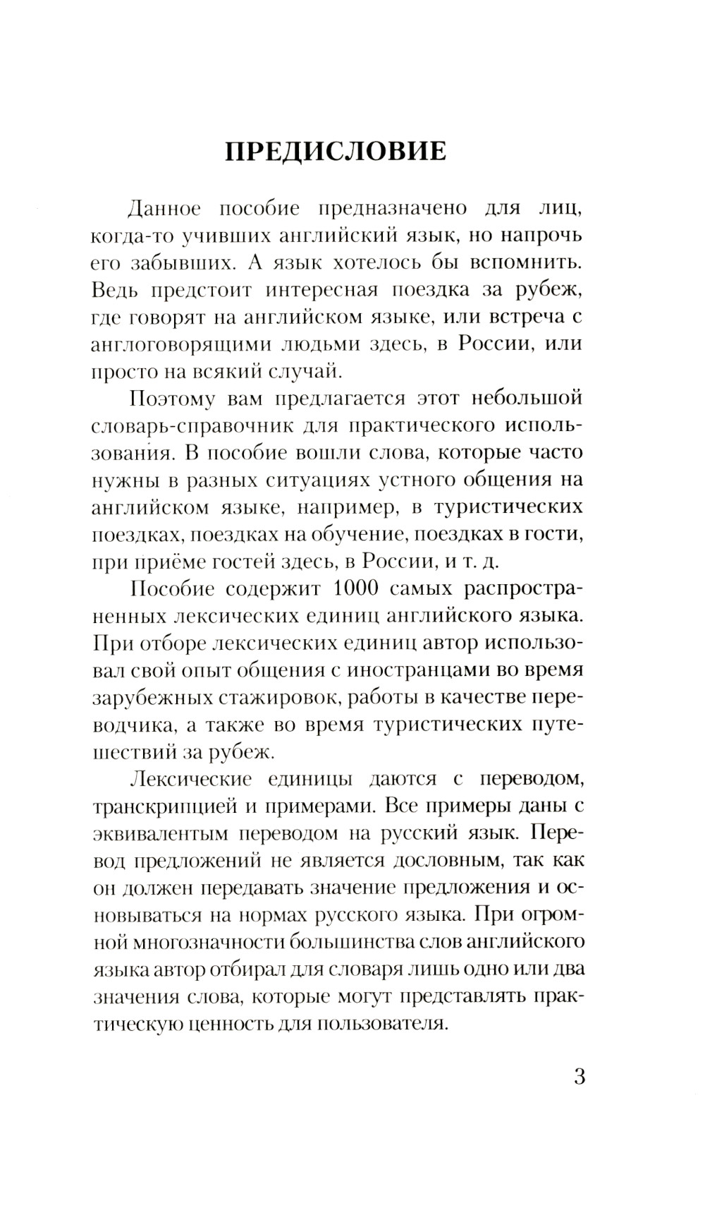 Данное издание станет прекрасным подспорьем для всех, кто когда-то учил английский язык, но из-за отсутствия разговорной и письменной практики сузил свой лексический запас. В пособии приводится тысяча самых распространенных слов английского языка, часто употребляемых в различных бытовых ситуациях, во время туристических поездок, в деловом и дружеском общении. Слова сопровождаются транскрипцией, переводом и примерами употребления в разговорной речи, пословицах, текстах объявлений, инструкциях, текстах новостных радио- и телепередач. Для всех изучающих английский язык.| Издательство | Проспект |