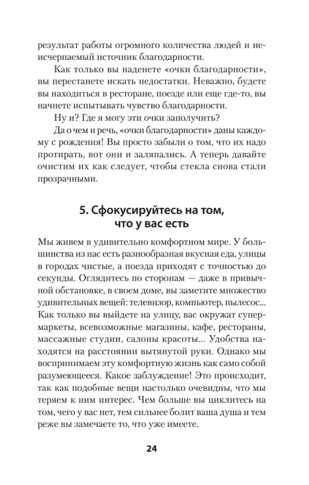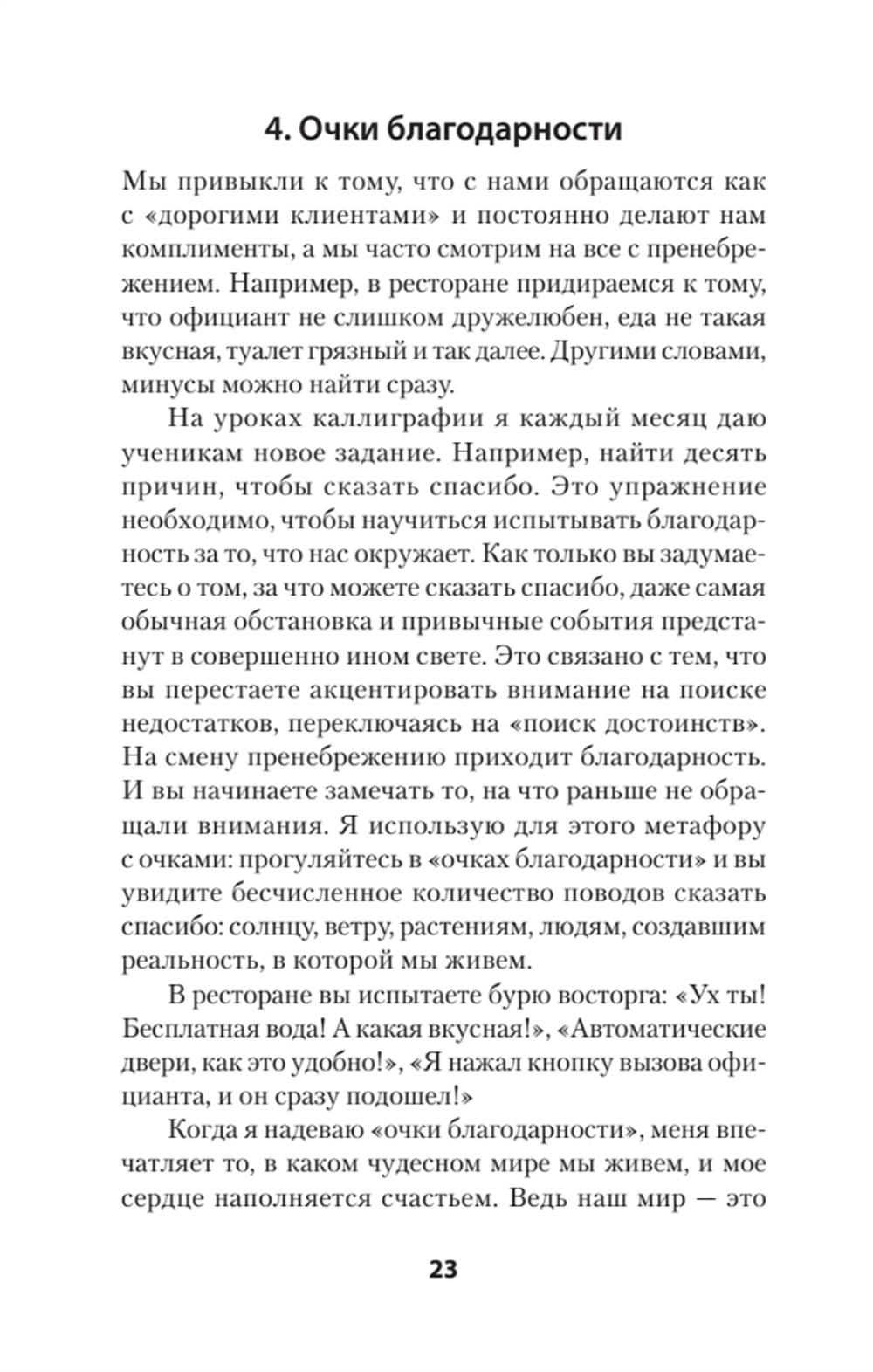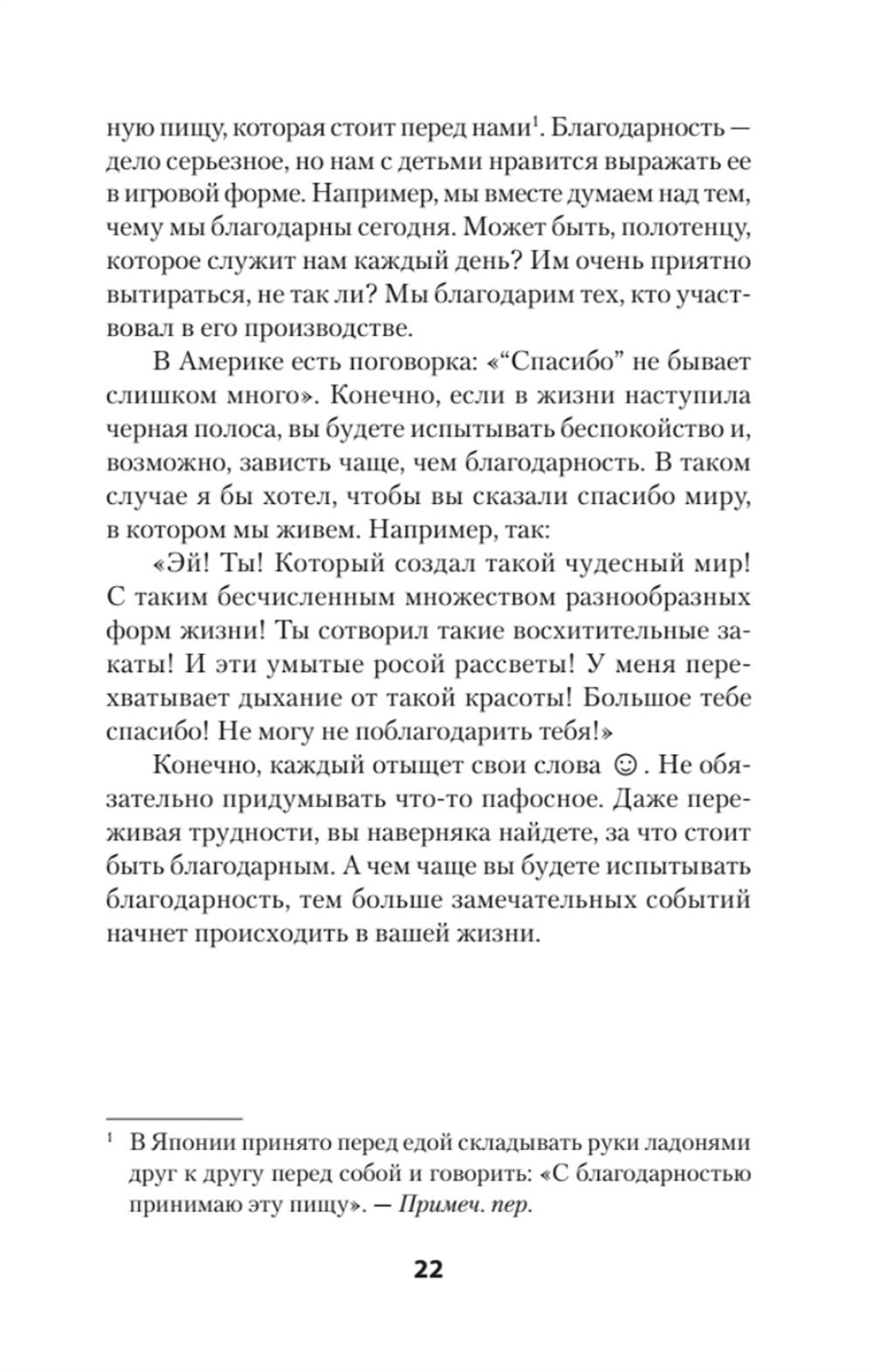 Вы хотите быть счастливым? Конечно, да! Но как этого добиться, когда столько поводов для раздражения и грусти? Весь секрет в том, как на это смотреть: сидеть и жалеть о том, что не получается или искать позитивные моменты во всем. О том, как это сделать рассказывает знаменитый японский художник и мыслитель Соун Такэда. Он предлагает читателям уникальный подход к позитивному мышлению, основанный на трех простых законах: делайте счастливыми других, замечайте счастливые моменты и говорите о своем счастье. Такэда предлагает 11 правил, которые помогут каждому избавиться от негативного мышления и обрести внутреннее спокойствие. А помогут в этом задания и личные практики, которые автор приводит на страницах этой книги. Следуя его рекомендациям, вы сможете изменить свои отношения с окружающим миром и научиться радоваться каждому дню. Эта книга - ваш путеводитель к безусловному счастью, которое уже живет внутри вас.| Издательство | Питер |