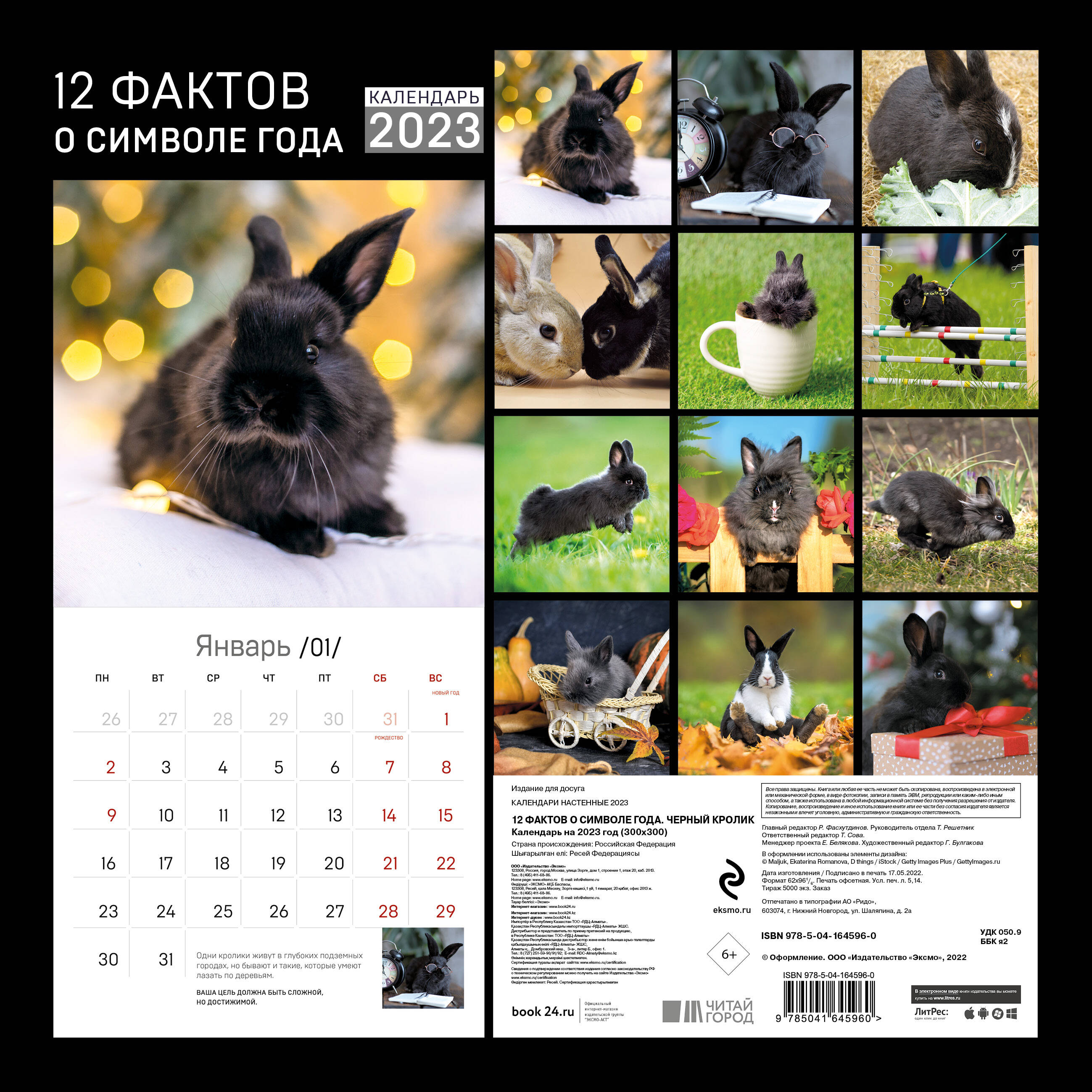 Аннотация: 12 фактов о символе года. Черный кролик. Календарь настенный на 2023 год (300х300)