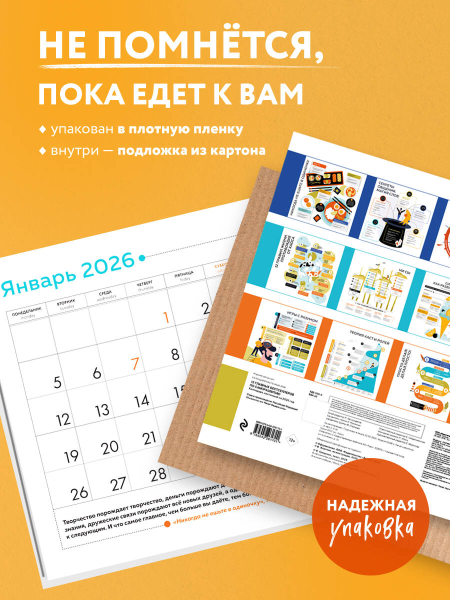 Аннотация: 12 главных бестселлеров по саморазвитию. Календарь настенный на 2026 год (300х300)