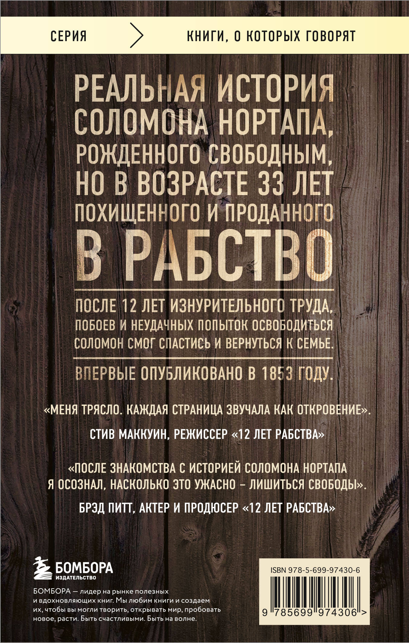О книге «12 лет рабства». Впервые на русском языке легендарная книга, которая вдохновила Голливуд. «Оскар»-2014 за лучший фильм года. «12 лет рабства» - это поразительная история Соломона Нортапа, рожденного свободным, но в возрасте 33 лет похищенного и проданного в рабство. После 12 лет изнурительного труда, побоев и неудачных попыток сбежать Соломон смог вернуть себе самое драгоценное для человека - свободу. Эта книга ждала своего часа 160 лет. «12 лет рабства» - история, которую должен прочитать каждый. Отзывы «Меня трясло. Каждая страница звучала как откровение». - Стив МакКуин, режиссер «12 лет рабства» «После знакомства с историей Соломона Нортапа я осознал, насколько это ужасно - лишиться свободы». - Брэд Питт, актер и продюсер «12 лет рабства» Фишки книги Иллюстрации заимствованы из оригинального издания 1855 года.