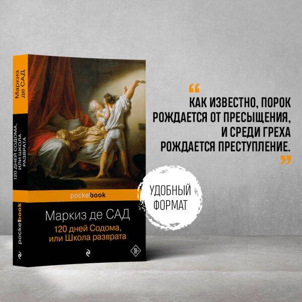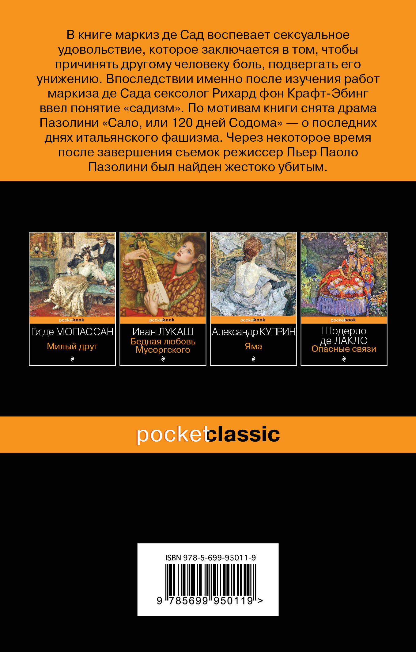 Самые откровенные, шокирующие, порочные фантазии в романе величайшего знатока эротики Маркиза де Сада. Философия разрушения, превознесение порока, все виды изнасилований и наказаний - в "120 дней Содома, или Школа разврата", написанных в Бастилии. Рукопись была спрятана де Садом в стене камеры и случайно обнаружена только в 1900-м году.