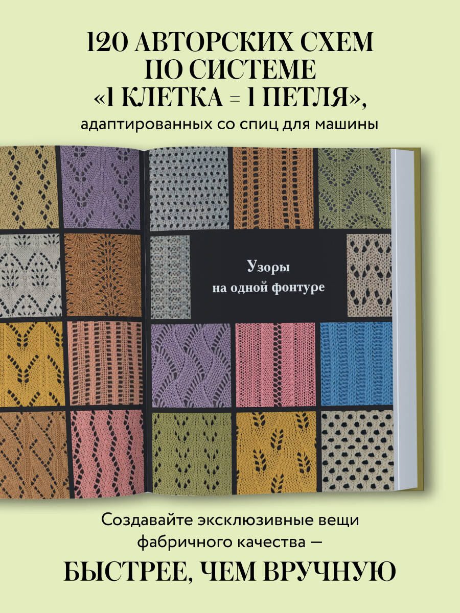 120 узоров для вязания на машине. Энциклопедия дизайнов со схемами, принципами построения и готовыми решениями для ручной деккеровки
