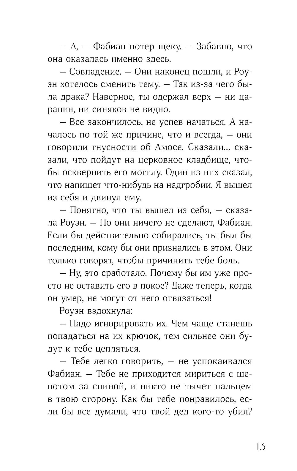 Финальная часть трилогии «13 сокровищ» - дебюта Мишель Харрисон, который принес ей литературную известность и был отмечен премией книжной сети Waterstones. Спрятаться от прошлого бывает очень непросто. Довольная жизнью в поместье Элвесден, Роуэн изо всех сил пытается забыть о своем прошлом, но оно преследует ее и во сне, и наяву. И никакие преграды от фейри не способны защитить ее, прошлое все равно найдет лазейку. И когда оно возвращается, Роуэн встает перед выбором: встретить его лицом к лицу, отвоевать свое право на счастливую жизнь, или снова пуститься в бега. Роуэн устала убегать. Впервые в жизни, она нашла место, где ее любят и понимают. И она не готова просто так от него отказаться. Таня и Фабиан замечают, что Роуэн ведет себя странно, и решают выяснить, что она скрывает. И теперь все трое вновь оказываются замешаны в опасном приключении, а их новые знакомые начинают исчезать один за другим. За кем ведется охота на самом деле, и смогут ли они выстоять в битве с миром фейри и не дать прошлому полностью поглотить Роуэн в этот раз. И какую цену придется за это заплатить.