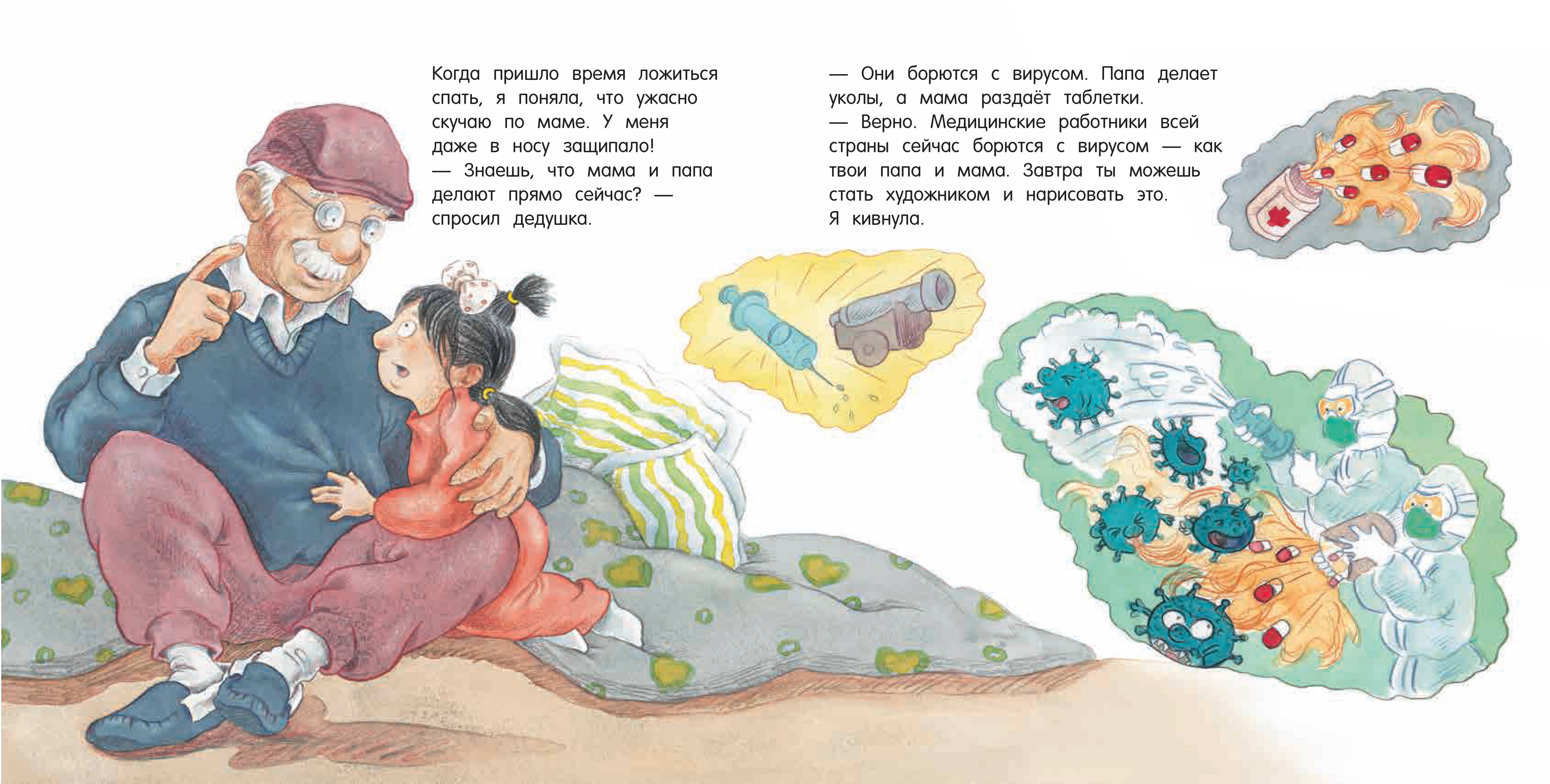 В этой книге вы найдете трогательную историю о маленькой девочке, которая две недели вместе со своим дедушкой находится дома на карантине. Чтобы отвлечь ее от грустных мыслей, он каждый день придумывает, в кого она может превратиться, например, в полицейского, врача или пациента. 14 дней - 14 игр, которые помогут героине понять, как во всем мире люди борются с вирусом.| Издательство | ООО "Издательство "Эксмо" |