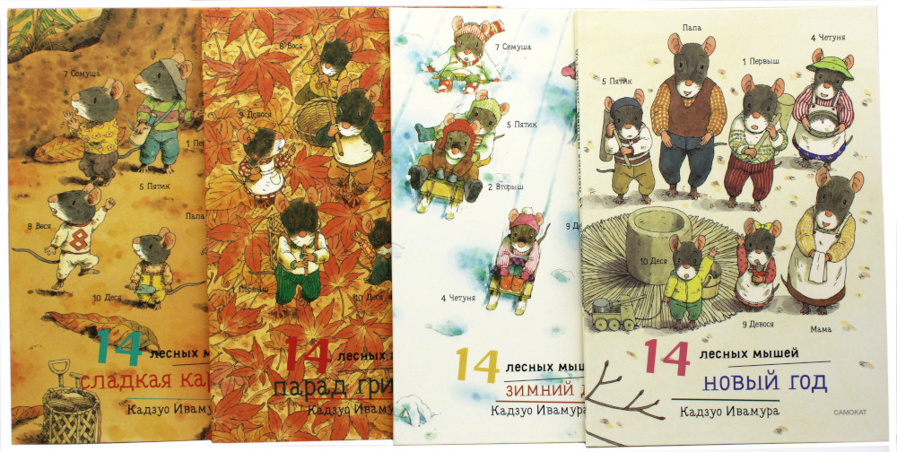 Комплект «14 лесных мышей. Комплект зимний (комплект из 4 книг)» содержит книги: «14 лесных мышей. Сладкая картошка», «14 лесных мышей. Парад грибов», «14 лесных мышей. Зимний день», «14 лесных мышей. Новый год». Этот комплект из четырёх книг покажет прохладную, преходящую красоту осенних и зимних месяцев; наблюдая за жизнью мышат, ребёнок сможет развить внимание, логическое мышление, эмпатию и узнать много нового о природе.