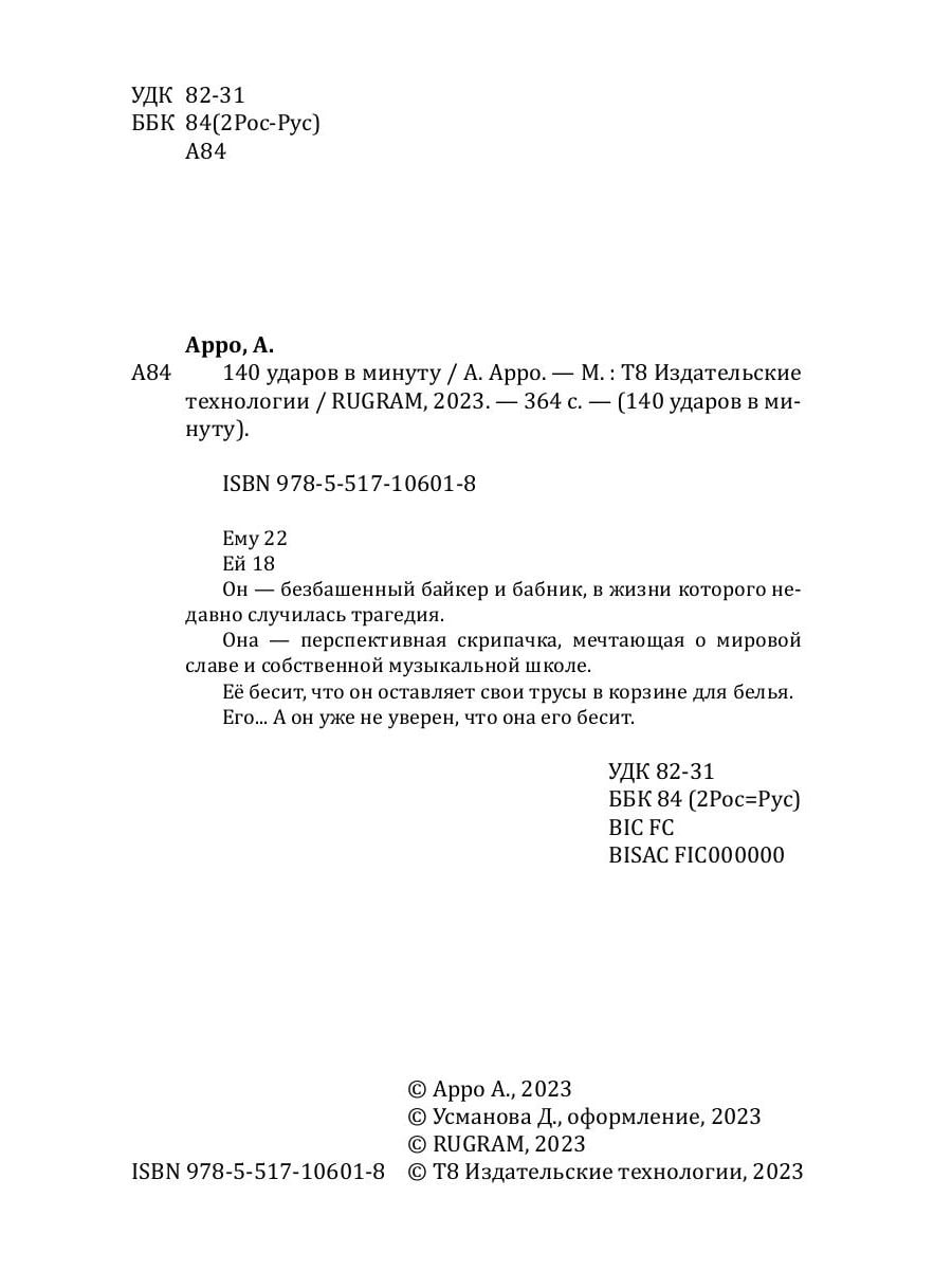 Ему 22. Ей 18. Он - безбашенный байкер и бабник, в жизни которого недавно случилась трагедия. Она - перспективная скрипачка, мечтающая о мировой славе и собственной музыкальной школе. Её бесит, что он оставляет свои трусы в корзине для белья. Его... А он уже не уверен, что она его бесит.| Издательство | Т8 RUGRAM |
