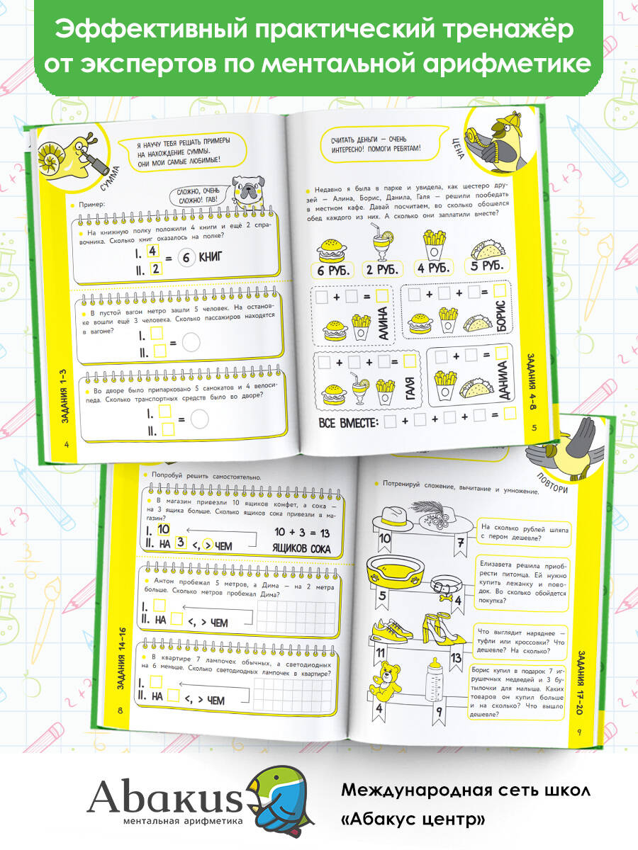 Научиться решать примеры? Легко! Перед вами эффективный практический тренажёр для детей от экспертов по ментальной арифметике. Его авторы, преподаватели Международной сети школ по развитию интеллекта и математического мышления «Абакус центр», создали комплекс методик с применением нейропсихологического подхода. В книге множество практических заданий и упражнений, с помощью которых родители смогут увлечь ребёнка математикой и помочь его интеллектуальному развитию. «Абакус центр» - это 182 действующие школы в 25 странах мира. Его преподаватели подготовили более 30 000 учеников, из них 96 призеров международных олимпиад PAMA Global. Достижения и рекорды учащихся часто освещаются в СМИ. Фишки: - Игровая методика от экспертов - лидеров рынка - Постепенное усложнение заданий - Наглядные примеры понятны детям - Развивает логическое и пространственное мышление = Ребёнок справится сам!| Издательство | ИЗДАТЕЛЬСТВО "АСТ" |