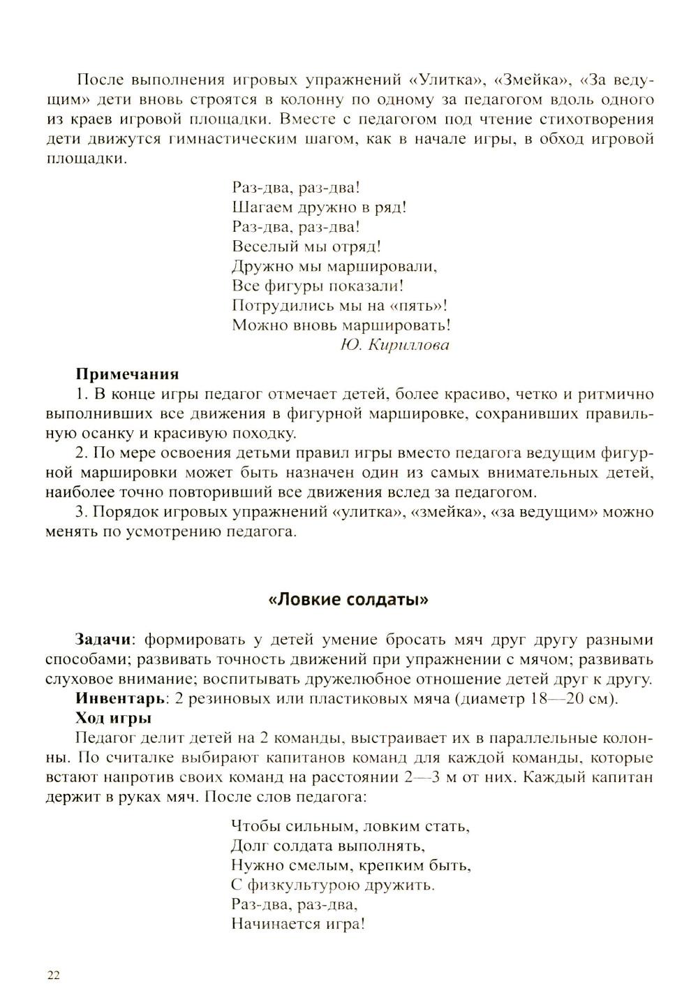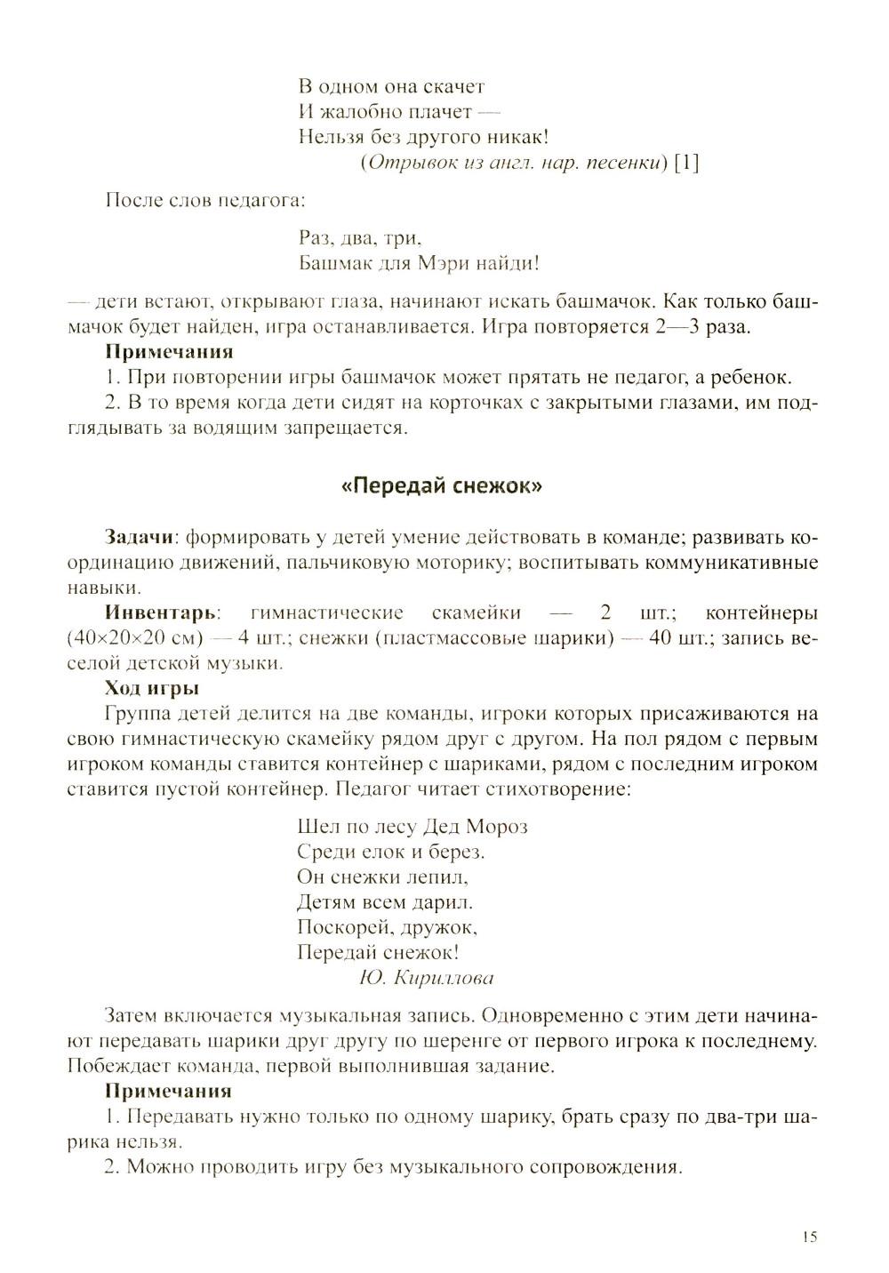 В методическом пособии представлены комплексы игр малой подвижности, которые можно выполнять как в спортивном зале, так и на прогулке (без предметов и с предметами). Игры также можно включить в повседневную деятельность детей в детском саду, они разнообразят их досуг, сделают ознакомление с окружающей средой увлекательным и помогут развить дружелюбное отношение друг к другу. Кроме того, включенные в пособие русские народные игры познакомят малышей с культурой России, вызовут интерес к ее истории и традициям. Методическое пособие адресовано руководителям физического воспитания, инструкторам по физической культуре, педагогам и специалистам дошкольных образовательных учреждений, студен там педагогических колледжей, педагогам дополнительного образования.| Издательство | Детство-Пресс |