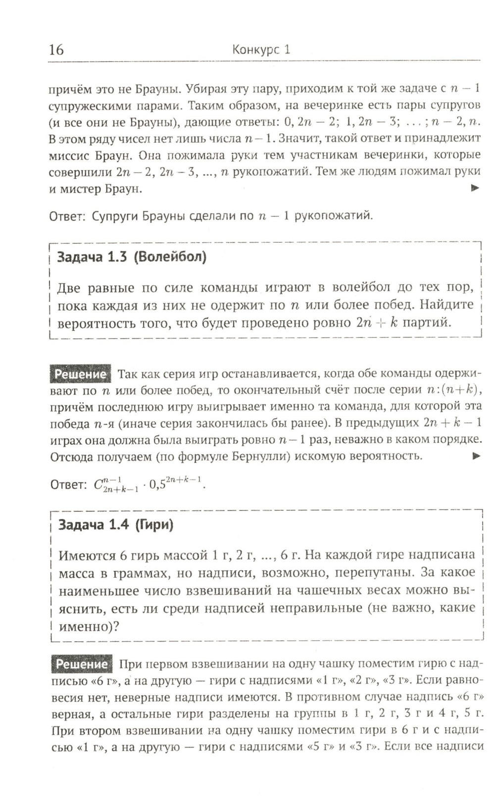 В настоящей книге содержатся задачи математических конкурсов, регулярно проводящихся в Южно-Уральском государственном университете (ЮУрГУ) начиная с 2009 г. Площадкой проведения конкурса является группа «Математический конкурс в ЮУрГУ» в социальной сети «В контакте». Благодаря Интернету в число активных участников конкурса вошли не только студенты и аспиранты ЮУрГУ, но также студенты других вузов и взрослые любители математики из разных городов России и стран ближнего зарубежья. В каждом конкурсе - шесть задач, разнообразных по тематике (от элементарной геометрии и алгебры до избранных глав математического анализа и дискретной математики) и сложности (от занимательных задач типа головоломок до задач, содержащих новые научные результаты). Ряд задач призван показать применение и мощь математического аппарата при решении «практических задач» (например, про площадь выпаса, про развертку разреза батона колбасы, про старую готовальню). Некоторые задачи конкурса имеют цель расширить математический кругозор участников, привлечь их внимание к интересным математическим сюжетам. Примеры таких сюжетов: числа Ван дер Вардена, производящая функция чисел Фибоначчи, цепные дроби, теорема Хелли, экстремальная теорема Турана, геометрические теоремы Жергона, Стюарта и Бретшнейдера. Как отмечают рецензенты, задачи «свежи, нетривиальны и интересны». Данный сборник задач можно использовать в работе студенческих и школьных математических кружков, для подготовки к олимпиадам и для самообразования.| Издательство | ЛЕНАНД |