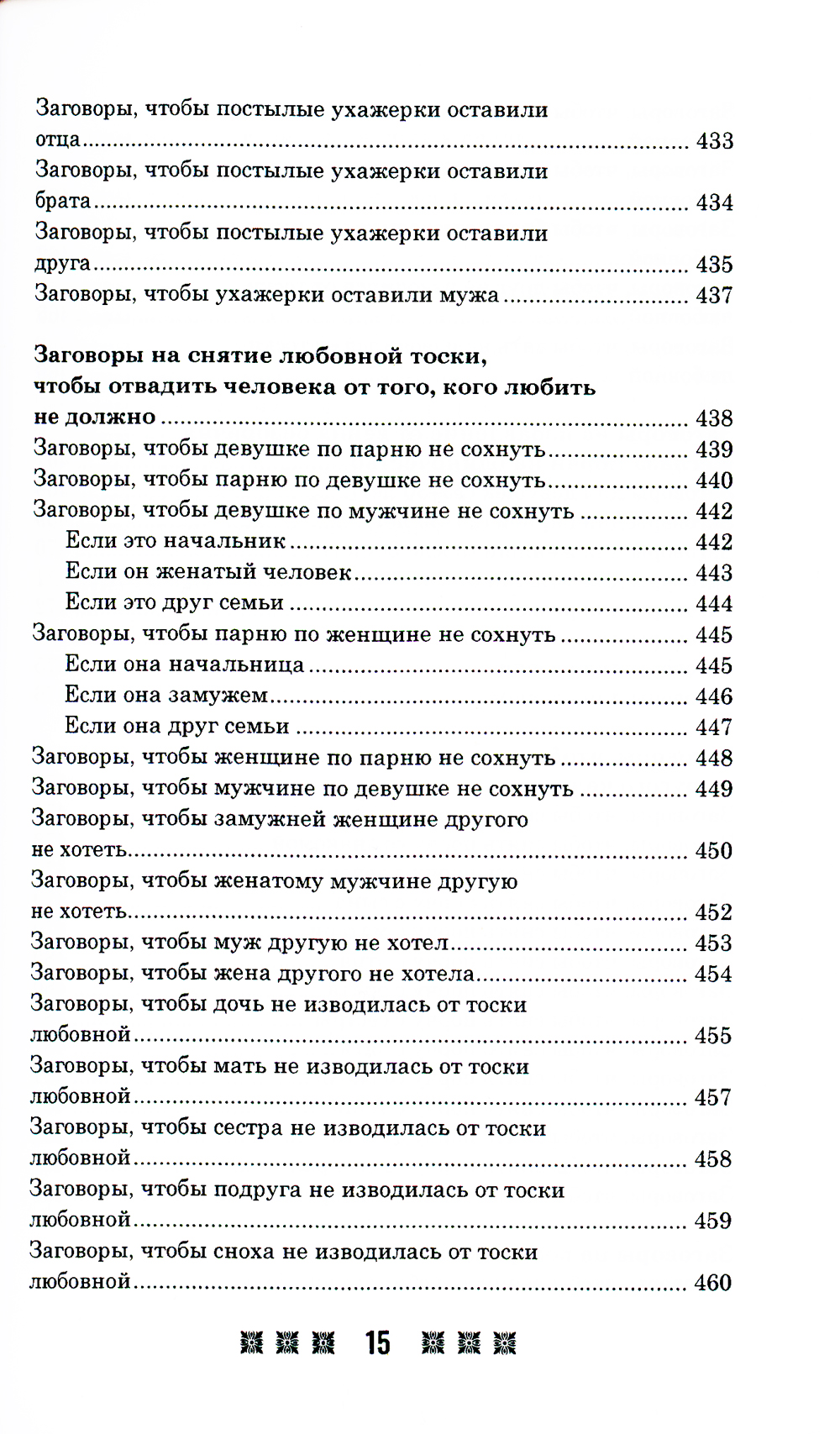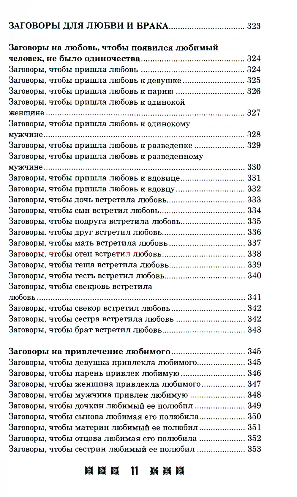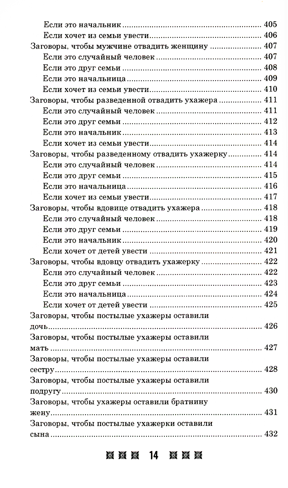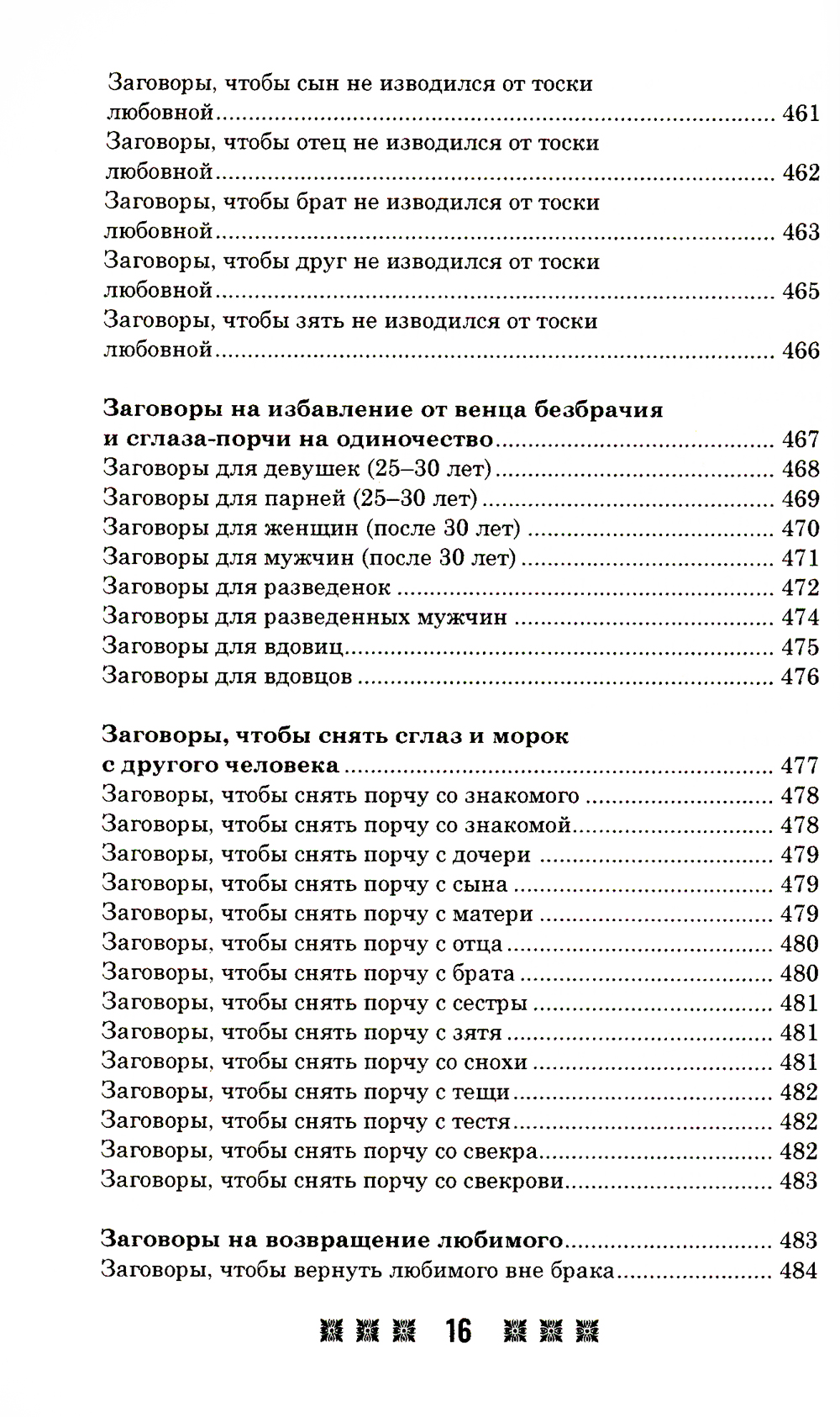Этим заговорам три сотни лет. Их собирали и тщательно хранили печорские целительницы-старообрядки Федоровские. Это необычные заговоры, не магия и не колдовство - это почти молитвы, только особые, цель которых - получение конкретных вещей. Нынешняя печорская целительница Мария Семеновна Федоровская говорит: «Каждый понимать должен: его счастье никому не достанется, только ему самому. Оно есть, оно его дожидается. Заговоры наши покажут дорожку заветную, чтобы найти свое счастье. Одному нужно сначала здоровье поправить, другому - с финансами разобраться, третьему - семейные вопросы решить. Все получится, заговоры для решения любых проблем есть».| Издательство | Омега-Л |