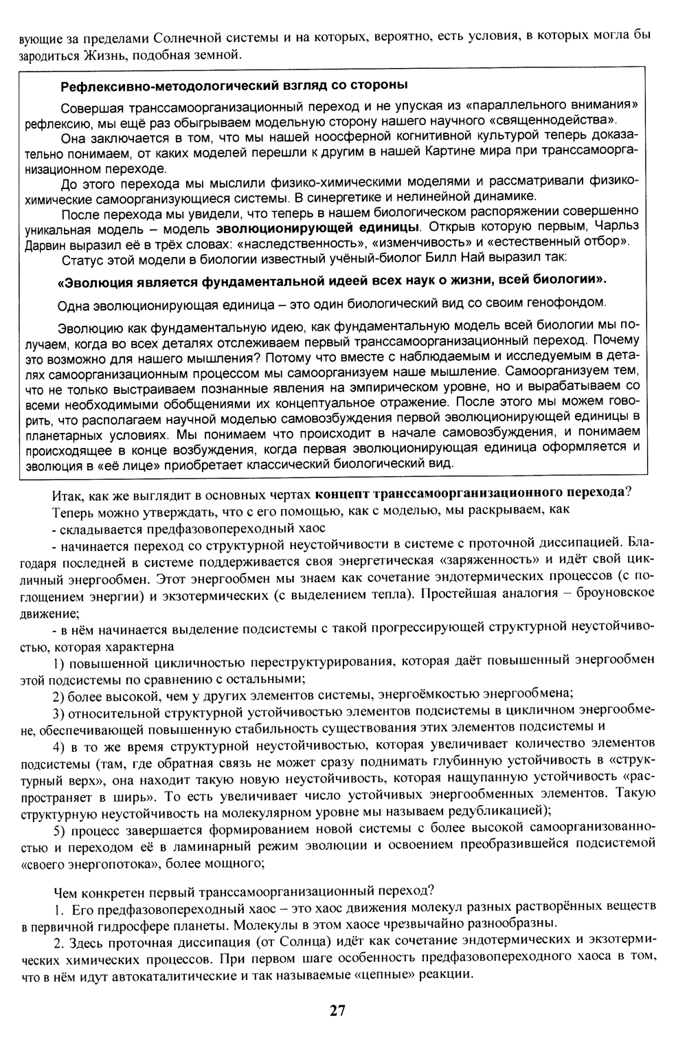 Мы вошли в эпоху осознания обратносвязевой закольцованности собственного сознания. Мы всё больше размышляем не только о своих мыслях, но и о том, КАК мы мыслим. Мы узнаём, что Владимир Даль собирал не только пословицы, но и пословицы о пословицах типа «Каждая пословица не даром молвится!» Мы рефлексируем свою культуру и пишем книги с названием «Слово о словах», как Глеб Успенский. Мы серьёзно рассуждаем о том, что такое понятие «понятие». Мы для того, чтобы самим разобраться в своём познании, пишем книги с названием «Самопознание» как Николай Иванович Бердяев. Мы узнаём, что нейрофизиологи до сих пор исследуют и никак не выяснят, как мозг отражает процесс отражения, ведь он же не зеркало?.. Мы в лице информатиков выяснили, что для того, чтобы профессионально работать с информацией, то нужна ещё и информация об информации. К ним присоединяются архивариусы и библиотекари: чтобы не утонуть в знаниях, для этого надо обладать специальными профессиональными знаниями... Философы всё пристальнее рефлексируют свою философию и защищают диссертации типа «Рефлексия рефлексивного мышления как методологический подход в осознании мира и человека»... Мы находим в изюминку в словах философа Блеза Паскаля, сказавшего: «Истинное красноречие пренебрегает красноречием,... Пренебрежение философствованием и есть истинная философия».| Издательство | Родина |