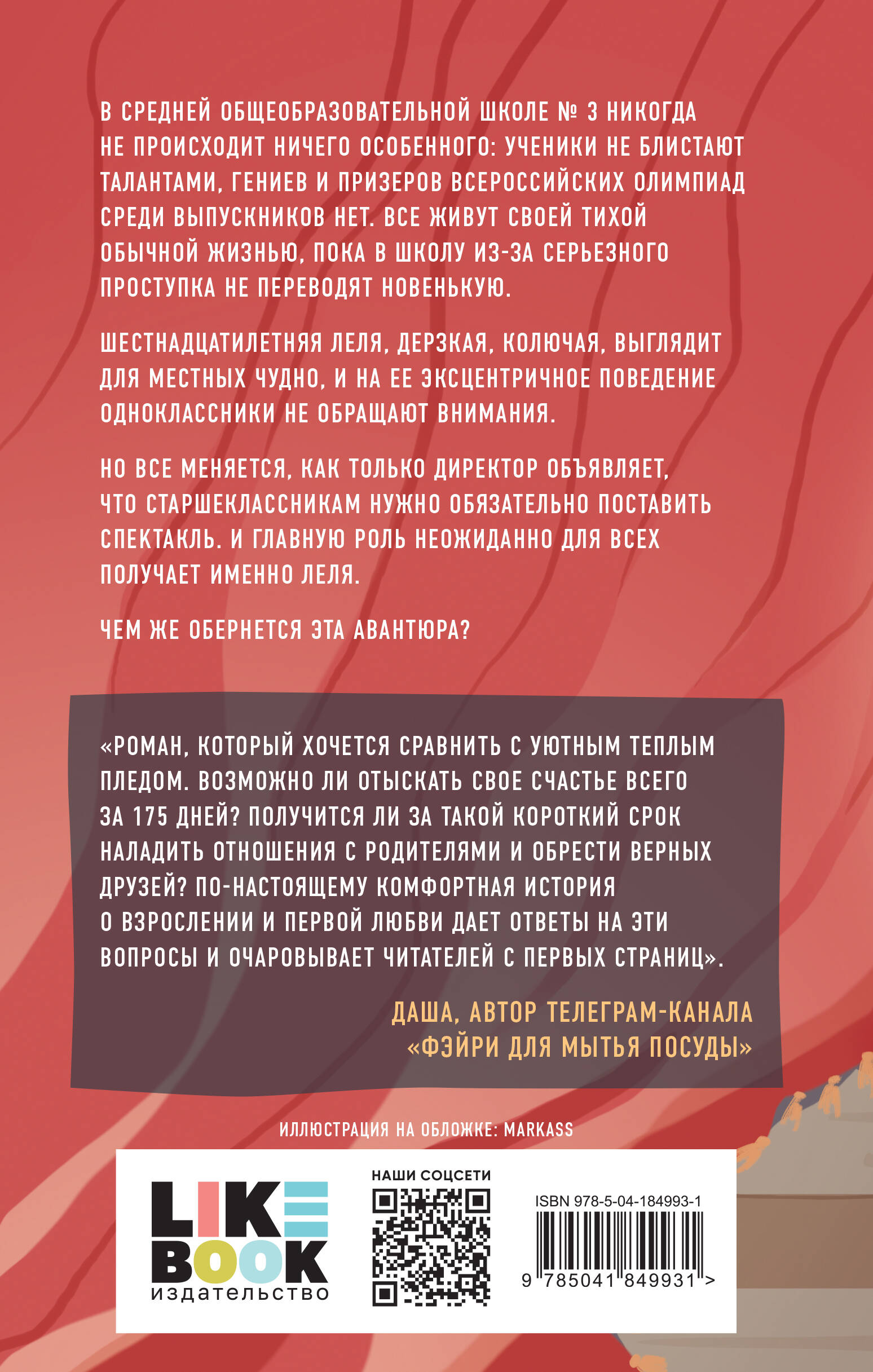 Новинка от автора «36 вопросов, чтобы влюбиться» и «Майское лето» Зины Кузнецовой. Бонус к основному роману «175 дней на счастье» - повесть «Романтическое воспитание». Иллюстрация на обложку нарисовала популярная художница Markass! В средней общеобразовательной школе № 3 никогда не происходит ничего особенного: ученики не блистают талантами, гениев и призеров Всероссийских олимпиад среди выпускников нет. Все живут своей тихой обычной жизнью, пока в школу из-за серьезного проступка не переводят новенькую. Шестнадцатилетняя Леля, дерзкая, колючая, выглядит для местных чудно, и на ее эксцентричное поведение одноклассники не обращают внимания. Но все меняется, как только директор объявляет, что старшеклассникам нужно обязательно поставить спектакль. И главную роль неожиданно для всех получает именно Леля. Чем же обернется эта авантюра? «Роман, который хочется сравнить с уютным теплым пледом. Возможно ли отыскать свое счастье всего за 175 дней? Получится ли за такой короткий срок наладить отношения с родителями и обрести верных друзей? По-настоящему комфортная история о взрослении и первой любви дает ответы на эти вопросы и очаровывает читателей с первых страниц». - Даша, автор телеграм-канала «Фэйри для мытья посуды»| Издательство | ООО "Издательство "Эксмо" |
