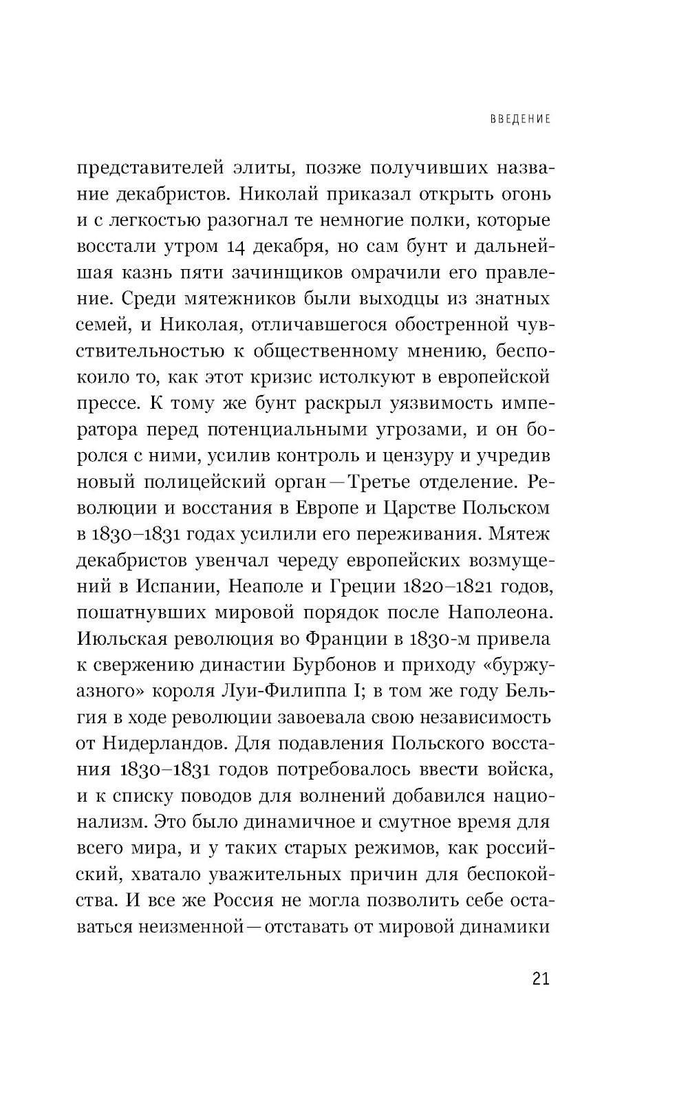 Россию эпохи Николая I принято рассматривать как драматический период консервативного поворота, общественного застоя и укрепления автократической власти. Книга историка П. Верта стремится доказать, что будущая реформаторская эпоха зарождалась в недрах этих «темных времен». В центре внимания автора - 1837 год, который вобрал в себя много заметных событий: смерть Пушкина, пожар в Зимнем дворце, строительство железных дорог, возникновение провинциальной прессы, становление русской оперы, первый визит Романовых в Сибирь и т. п. Каждая глава посвящена отдельной сфере российской социальной жизни того периода - культуре, прессе, идейным исканиям, промышленности, религии и т. д. Анализируя основные векторные линии развития страны, П. Верт делает вывод, что 1837 год стал поворотным годом для вступления страны в современную эпоху, колыбелью «тихой революции» - медленной, потаенной, но фундаментальной трансформации общественно-политического устройства страны. Пол Верт - профессор исторического факультета Университета Невады, специалист по российской истории.| Издательство | Новое литературное обозрение |